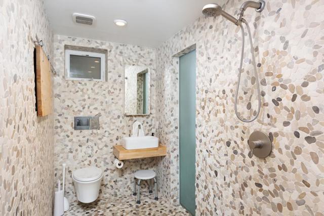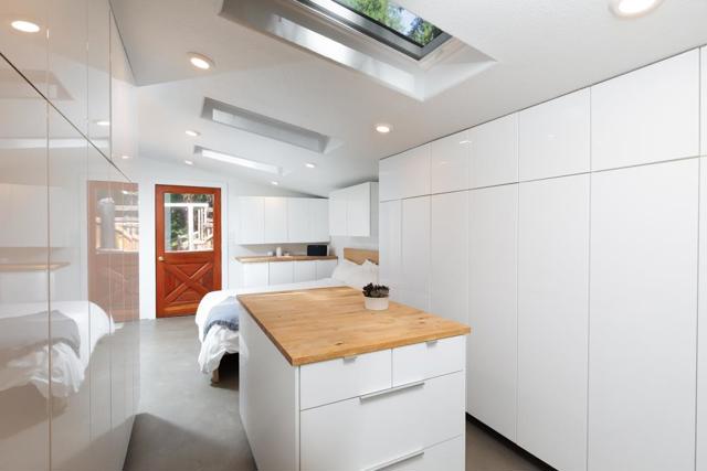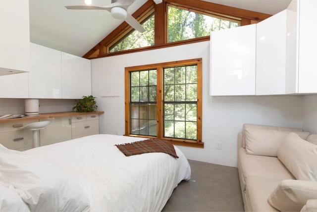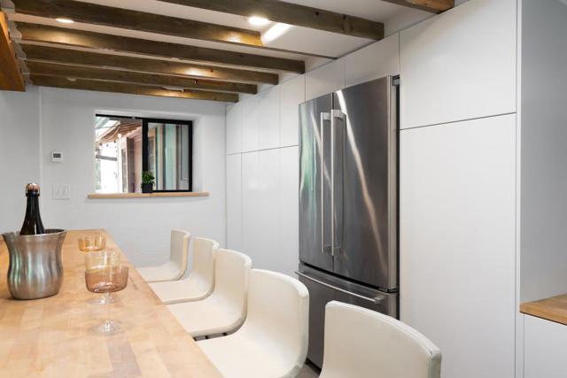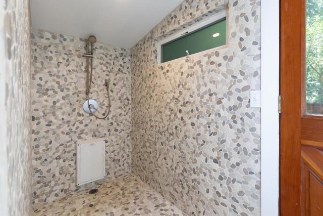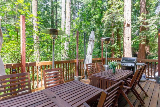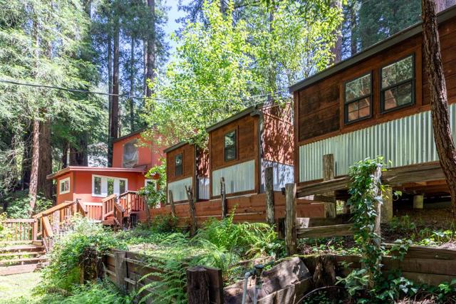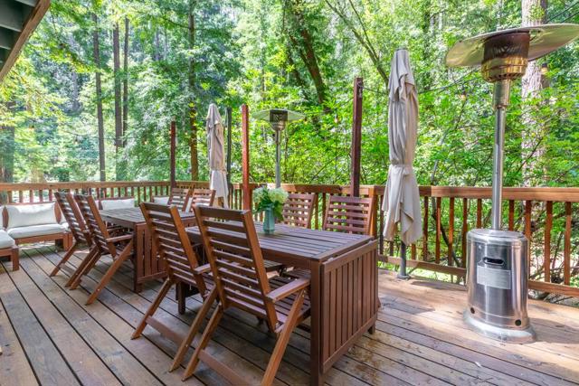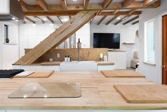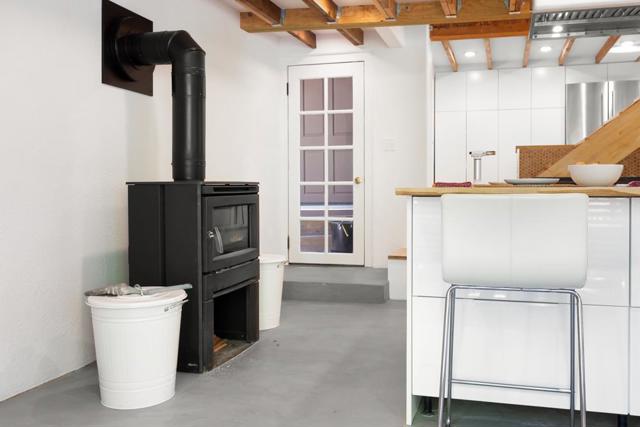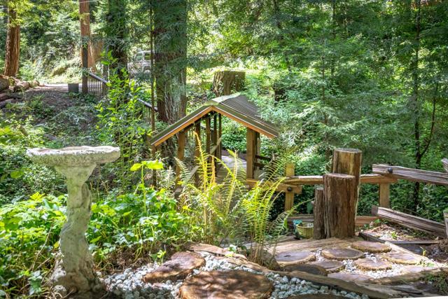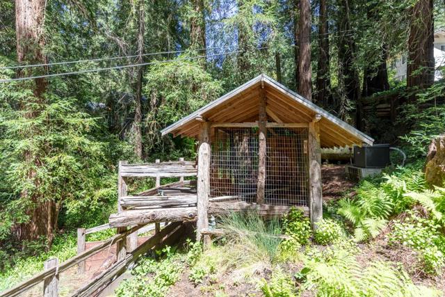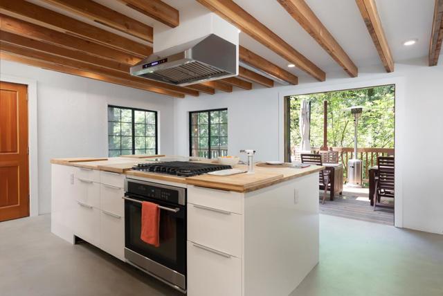 414 Hiawatha Road A Private Forest Sanctuary 414 Hiawatha Road is an enchanting retreat where natural beauty and thoughtful design create a sense of calm and quiet magic. Crossing the charming covered bridge, you're welcomed by the gentle sound of a babbling brook, an arrival that feels like stepping into a storybook. Inside, the home has been meticulously redesigned into a contemporary sanctuary with a warm Scandinavian aesthetic. Skylights invite soft forest light to pour in, creating a bright connection to the surrounding landscape. The kitchen blends style and function with a beamed ceiling, butcher block countertops, and custom built-ins, including a beverage fridge, nugget ice machine, and convection microwave. A cozy wood stove anchors the space, opening to a spacious deck with serene forest views and a hot tub for soaking under the trees. Upstairs are three bedrooms with sleek built-ins and beautifully designed baths, including a half bath with a shower and access to the dog run. Radiant-heated concrete floors, multiple view decks, a detached building, storage structures, an EV charger, and RV/boat parking complete the offering.