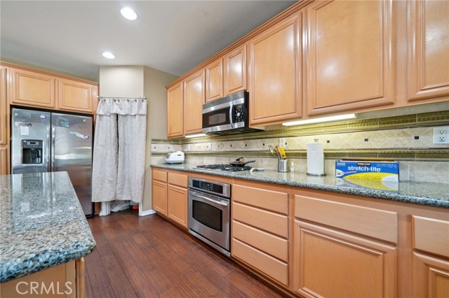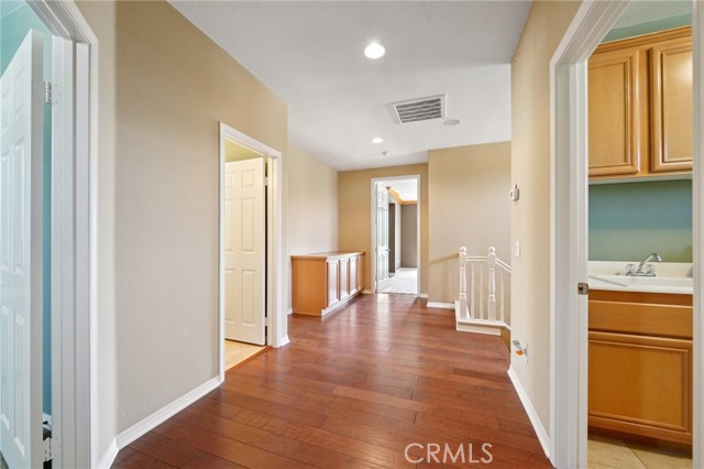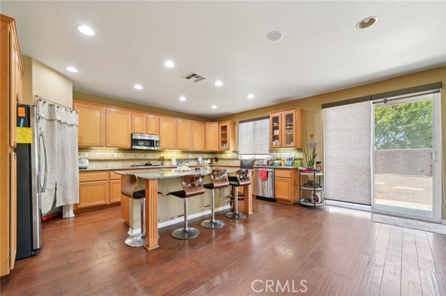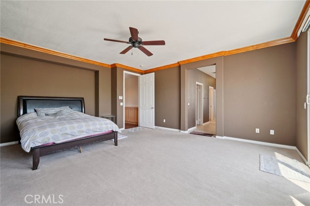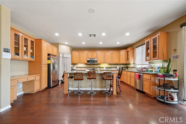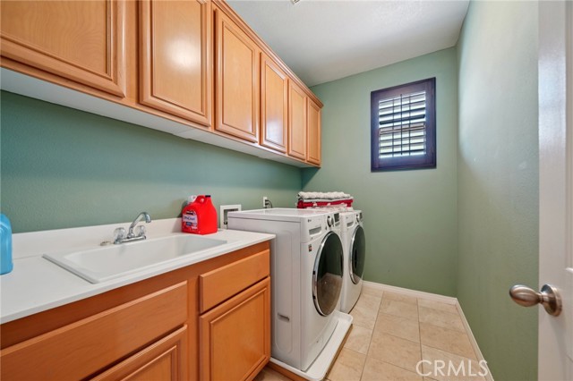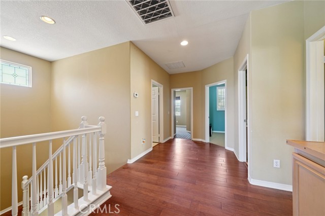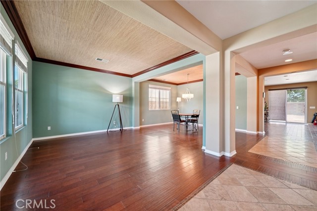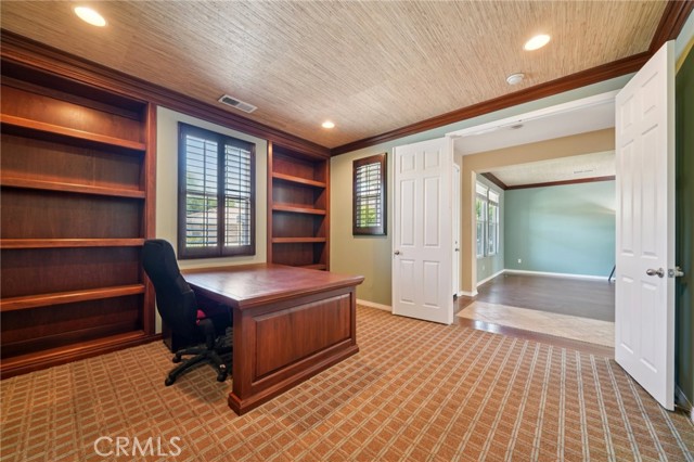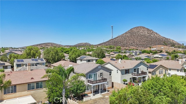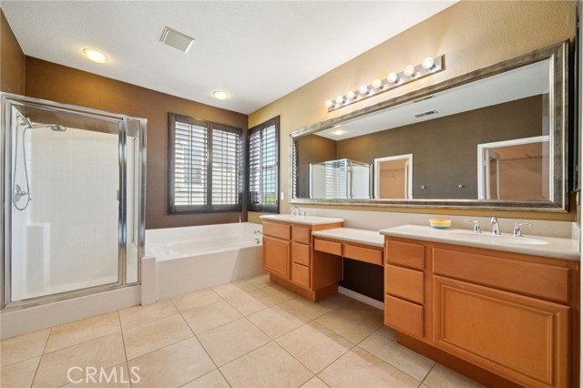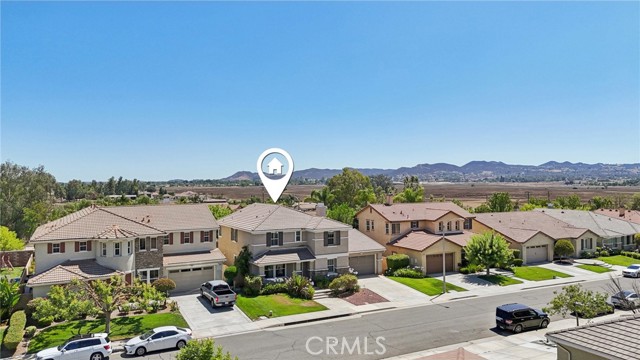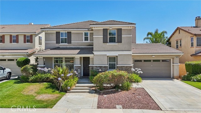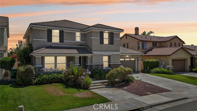 TRULY A MUST-SEE! Stunning former Beazer model home featuring 3,351 sq. ft., 4 bedrooms, 4 bathrooms, and a private office, situated on a pool-sized lot with a 3-car tandem garage. This home has designer upgrades, including custom paint, elegant window treatments, and upgraded flooring. Step inside to find beautiful wood flooring, custom-designed tile, and crown molding in the dining and living rooms. Designer area rugs are included with the home. The spacious great room with a cozy fireplace flows seamlessly into the gourmet kitchen, complete with granite slab countertops, custom tile backsplash, a large center island with seating, GE stainless steel appliances, a writing desk, and a walk-in pantry. The downstairs library features crown molding, custom-built-in desks, bookshelves, designer carpeting, and plantation shutters. The laundry room, also downstairs, offers ample cabinetry, Corian countertops, and a sink. Upstairs, all bedrooms have their unique designer touches, including custom carpeting and stylish finishes. Each bathroom features tile flooring and Corian countertops. The luxurious primary suite boasts crown molding, ceiling fans, custom wallpaper, a private deck, dual sinks, upgraded countertops, wood shutters, and a large walk-in closet. The backyard is perfect for entertaining with a concrete patio, covered seating area, and built-in BBQ—ideal for summer gatherings! Located in a fast-growing city, this home is your chance to own a beautifully upgraded property in a prime area. Don’t miss the opportunity to make this your forever home!