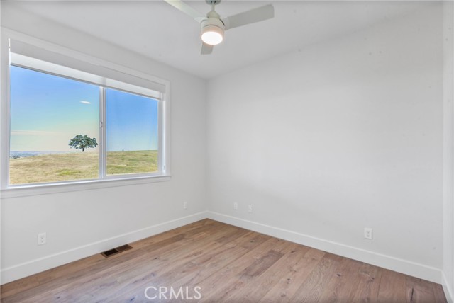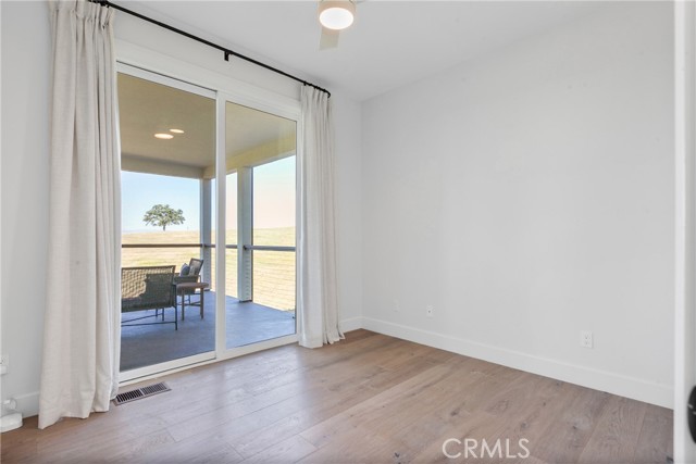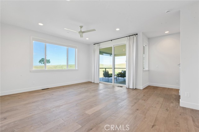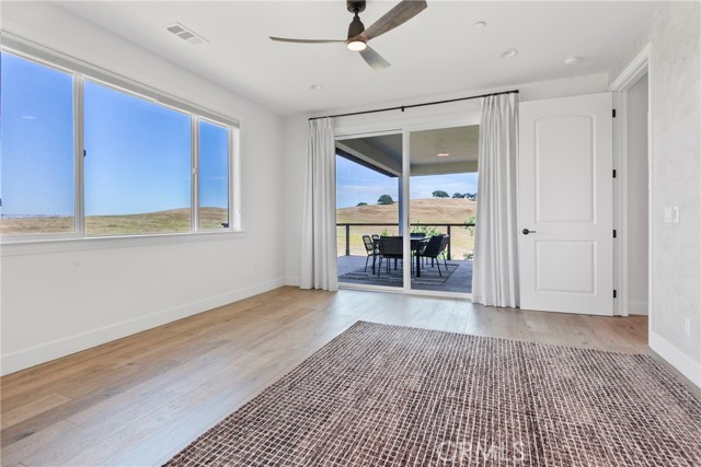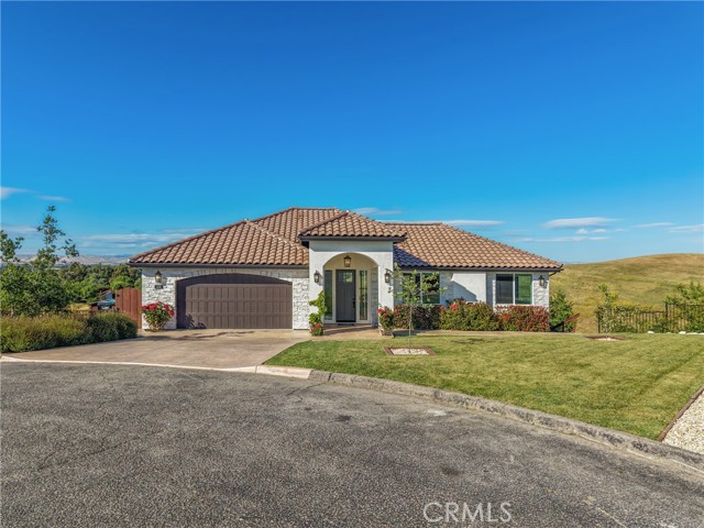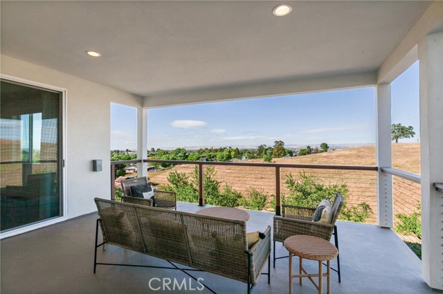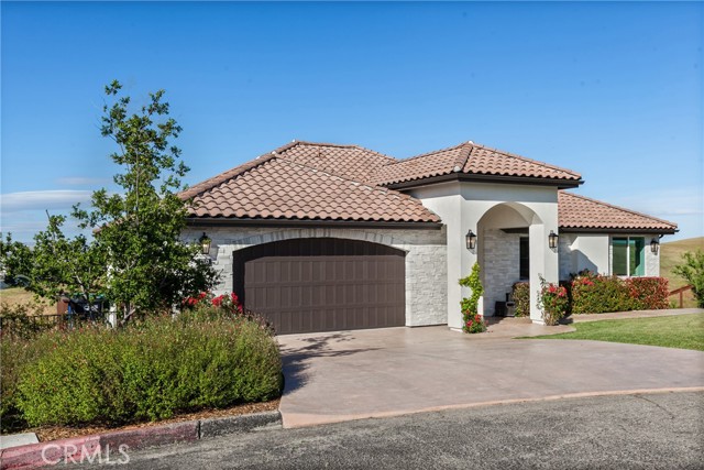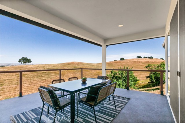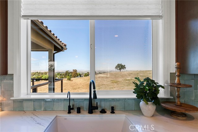 Set behind the gates of Kapareil Estates, this newly built 2024 residence offers a rare blend of modern design, privacy, and sweeping Paso Robles views—all on a full acre. Thoughtfully positioned to capture the surrounding landscape, the home invites you in with clean architectural lines, warm natural finishes, and an effortless indoor-outdoor flow. Luxury plank flooring carries through the open-concept living space, where expansive glass doors frame rolling hills and lead to a covered deck designed for year-round enjoyment—morning coffee, golden hour dinners, and everything in between. At the heart of the home, the kitchen delivers both style and substance. Custom cabinetry, a striking two-tone design anchored by a soft seafoam island with subtle gray undertones, designer lighting, and a beautifully tiled backsplash create a space that feels both elevated and inviting—equally suited for quiet evenings or effortless entertaining. The layout offers four well-appointed bedrooms and 2.5 baths across approximately 2,488± square feet, including a serene entry-level primary suite with direct access to outdoor living and a spa-inspired bath. Each space has been carefully considered to balance comfort, light, and functionality. Beyond aesthetics, the home is equipped with owned solar, bringing long-term efficiency to its modern appeal. Set on a full acre, the property offers a sense of openness and quiet possibility, with almond and pomegranate trees thoughtfully dotting the landscape—all just minutes from Paso Robles’ renowned wineries, dining, and downtown charm. A contemporary take on wine country living—refined, relaxed, and ready to be experienced.
