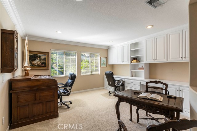Nestled in the highly sought-after Stonegate Collection of West Hills, this beautifully maintained 4 bedroom, 3 bath home offers approximately 3,043 square feet of living space on an elevated view lot with truly spectacular panoramic valley views. Currently, one of the secondary bedrooms has been thoughtfully converted into a climate-controlled wine room, offering a distinctive space for collectors while remaining easily adaptable for future bedroom, office, or flex-space needs. From the moment you arrive, the home’s classic curb appeal, mature landscaping, and commanding presence set the tone for what awaits inside. Step through the front door into a spacious floor plan featuring soaring vaulted ceilings, abundant natural light, formal living and dining spaces, and a warm, inviting flow ideal for both everyday living and entertaining. The kitchen offers custom cabinetry, granite countertops, stainless steel appliances, and an adjoining breakfast area that opens to the family room with wood flooring and plantation shutters. One of the home’s standout features is the expansive primary suite retreat, complete with an oversized sitting area, fireplace, and breathtaking views that create a true sense of luxury and privacy. The marble and travertine primary bath adds to the retreat-like feel. Additional highlights include a loft with built-in cabinetry, a custom wine room for enthusiasts, generously sized secondary bedrooms, and beautifully maintained indoor and outdoor spaces throughout. The backyard is where this home truly shines, offering phenomenal panoramic views of the valley and surrounding hills — the perfect backdrop for morning coffee, sunset evenings, and effortless indoor-outdoor living. Homes with this combination of location, square footage, layout, and views rarely come to market in Stonegate. A special opportunity for the buyer who has been waiting for something truly exceptional.
