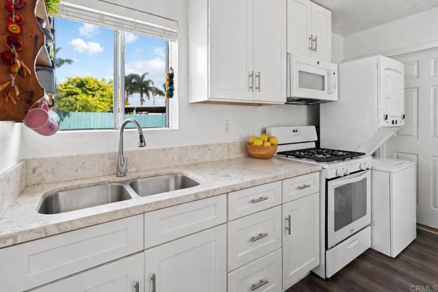 Charming coastal cottage just one mile from the beach! Detached guest house with a bright, modern interior featuring white cabinetry, stone countertops, gas range, and vinyl plank flooring throughout. Spacious living area, private bedroom with closet, and a tiled bathroom. Stackable washer/dryer included. Enjoy your own lush, private yard and wrap around patio. Walk 10–15 minutes to local cafés, coffee shops, and casual dining along Coast Hwy and Mission Ave. Downtown Oceanside’s restaurants, breweries, and coffee spots are just a 5-minute drive or short bike ride away. Street parking. Easy coastal living! Pets considered upon approval.