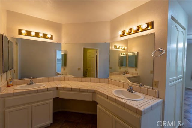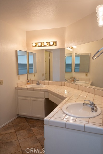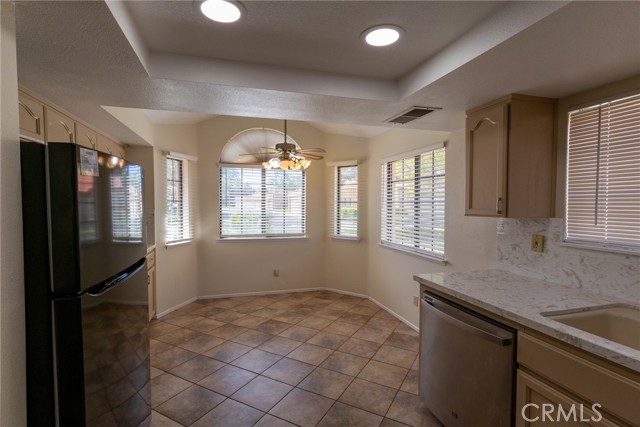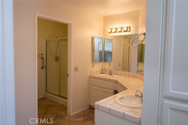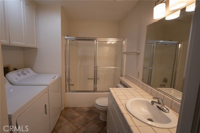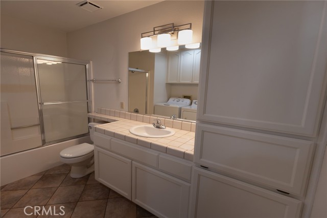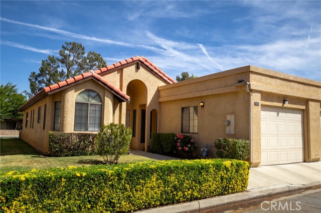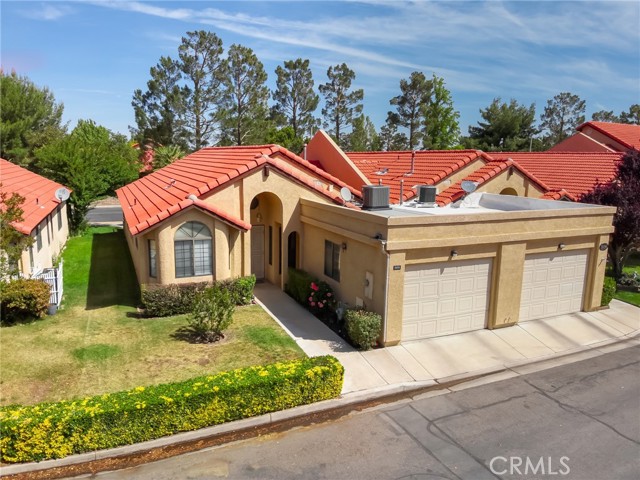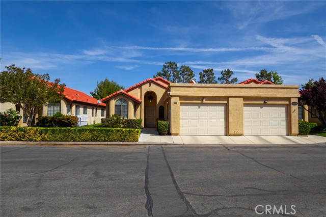 Welcome to this beautifully updated home in the desirable Jess Ranch’s Premier gated 55+ senior community. This inviting residence features 2 spacious bedrooms and 2 full bathrooms, including a convenient laundry area located in the second bathroom. The bright, eat-in kitchen offers ample natural light and plenty of space for casual dining. A large, open living room creates a comfortable gathering area and includes a sliding glass door that leads to a covered patio—perfect for relaxing or entertaining. The primary suite is a true retreat, complete with an ensuite bathroom featuring dual sinks, a walk-in closet, and private access to the patio. The home’s charming exterior is enhanced by well-maintained landscaping with colorful flowers and shrubs, creating a warm and welcoming atmosphere. Additional highlights include extra storage space in the garage and access to beautifully maintained walking areas within this secure, gated community.