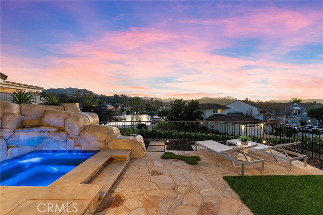 Completely reimagined in 2025, this contemporary custom-designed masterpiece redefines lakeview luxury. The 3-bedroom, 2.5-bath home showcases breathtaking main channel lake views from both the main living areas and the primary suite, complemented by surrounding mountain and Lakeshore community vistas—offering an unparalleled lifestyle for everyday living and entertaining. The floor plan is enhanced by seamless indoor-outdoor flow, creating a cohesive living experience that connects interior and outdoor spaces. The home features a designer living room with a Venetian plaster-finished electric fireplace, recessed and layered lighting throughout, and a striking custom entryway with an elegant powder room, complemented by elevated designer finishes. The luxurious primary suite includes a private balcony, a walk-in closet and additional closet space, and a beautifully upgraded bathroom with double sinks and a skylight. The guest bathroom is equally impressive, featuring designer touches for your guests’ comfort. The custom kitchen is equipped with GE Café appliances, abundant custom cabinetry, and dual waterfall-edge peninsulas. It opens to a versatile office/den/flex space with access to the rear patio featuring a waterfall spa with exceptional lake views, while the dining area leads to a private front patio with a fountain—perfect for entertaining. Additional storage includes a deep under-stair closet. The home also features smart blinds throughout, integrated smart lighting in select areas, dual-zone HVAC with Nest thermostats for enhanced comfort and efficiency, and a finished garage with epoxy flooring. The exterior has been thoughtfully refreshed with paint, updated finishes, new lighting, and enhanced landscaping, creating clean, modern curb appeal. An oasis of beauty and sophistication in the heart of Westlake Village, conveniently located near shops, restaurants, the Landing, the lake, boating, and more. HOA dues include Spectrum internet and premium cable, trash service, and community security patrol, along with access to resort-style amenities including lake access with docks and three private beaches, three pools and spas, pickleball, and scenic walking paths and greenbelts. Don’t miss this exceptional opportunity to own this fabulous home.