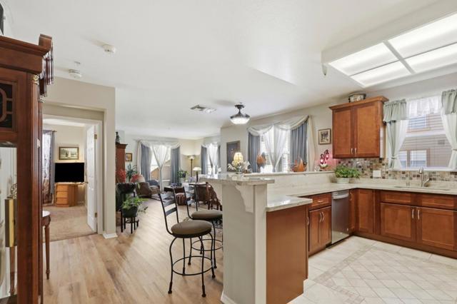 Impressive upgraded and improved home in the wonderful University Gardens complex, with 2 deeded underground parking spaces! Located into the complex and away from the busy street is this wonderful first floor end unit with a rare enclosed front patio area facing the common grounds. The interior features large windows and an open concept layout which is bright and airy. This unit has many upgrades you will not find in others! Luxury vinyl plank flooring. Granite counters and Metalia porcelain tiles in the kitchen, baths and entry. Solid wood cherry shaker cabinets and newer SS appliances. Direct access to the courtyard as well as the complex interior. Complex features a heated pool with changing rooms. The location is great! Close to all commute arteries, SJSU, SJ ice, and downtown restaurants, theaters and night life, but far enough to enjoy the peace and tranquility of your own home.