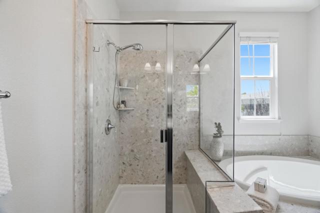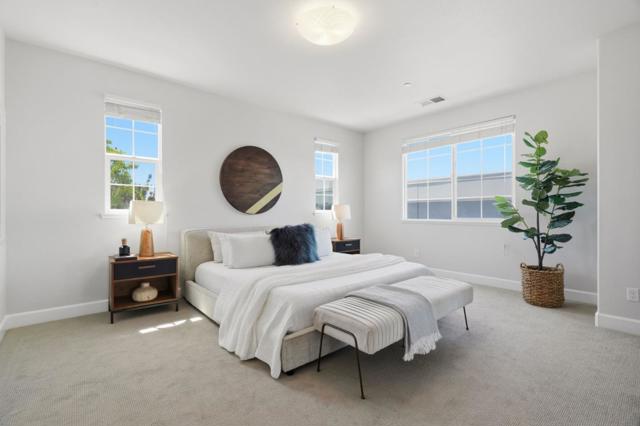 Situated at 320 Gerald Cir in Milpitas, this Spanish-modern home offers 2,166 square feet of functional, stylish living space with 3 bedrooms and 2.5 bathrooms. Located in a well-maintained, quiet, closed-loop neighborhood, the property combines timeless design with modern amenities while offering convenient access to nearby highlights. The home's east-facing arched windows offer stunning views of the hills, and the west-facing paved patio is perfect for sunsets. The open-concept kitchen features granite countertops, stainless steel appliances, a gas stove, and a refrigerator, making it ideal for both cooking and entertaining. Upstairs, the primary suite includes a soaking tub, double sinks, and a walk-in closet. Two additional bedrooms offer flexibility for family, guests, or a home office. Additionally, there is a playground within walking distance at the front of the neighborhood, making it great for families. This home boasts energy-saving features, including solar panels, a tankless water heater, and a high-efficiency HVAC system tucked away in the attic. The location offers nearby access to major highways, including 680, 880, and 237, as well as proximity to major tech companies. A large BART station is also nearby, making commuting even easier.