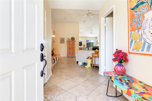 Single Story Charmer in the heart of South Corona’s Mountain Gate area. This delightful Autumnwood single-story home offers wonderful interior space including 3 great bedrooms and 2 bathrooms. The spacious, light, and bright kitchen has newer stainless-steel appliances that are all included – even the refrigerator. There are lots of cabinets for storage - and even a kitchen pantry! This open-concept layout features a pony wall that divides the kitchen from the living room, creating an easy flow between spaces. The living room has a gas fireplace, custom tile flooring, a vaulted ceiling with ceiling fan, and elegant baseboards. There are three wonderful bedrooms in the home. One bedroom is conveniently located just off the entry foyer for added privacy. The hallway bathroom has a shower in tub and newer lighting. Across the hall is an indoor laundry room - the washer and dryer are included! A hallway linen closet makes putting away the folded laundry a breeze. The primary suite offers an en-suite bath with double sinks, a tub/shower combo, and a walk-in closet. Outside, enjoy a serene, easy-care, and very private back yard with trees and shrubbery as your backyard neighbor instead of neighboring homes – perfect for entertaining, relaxing with a good book while sipping a cool drink, or dining al fresco. Additional highlights include a New HVAC system (installed March 2022 per sellers), Sun Reducing window screens on West and South facing windows, two car direct access garage with roll up garage door, hide away front screen door, rain gutters, and roll down sunshades in the back. The Autumnwood community pool, spa, and BBQ are across the street and a few steps away. You can enjoy a dip in the pool or soak in the spa without the worry or expense of having to maintain them yourself. The city of Corona’s Mountain Gate Park is nearby and has a BBQ and Picnic Area, Covered Shelter, Playground, Softball Field, Basketball Court, Tennis Courts, and Multiple Pathways for running, biking, walking, or walking a pet. This gem of a home is located close to Great Schools, Shopping, Dining, and all kinds of Outdoor Activities. Low HOA, Per “MyNHD” No Mello Roos and NOT IN a High or Very High Fire Zone!