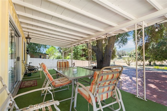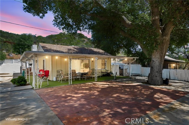 Charming ranch style home set in a peaceful country setting, surrounded by beautiful mountain views and expansive public land—perfect for those seeking space and outdoor living. Situated on a spacious ½-acre fenced lot, the property features mature trees, ample parking, and room for gardening or recreation. Enjoy outdoor living with a covered wraparound porch and a large paver patio complete with a built-in BBQ island—ideal for entertaining. Inside, the home offers a warm and inviting living room with a brick fireplace, while the kitchen features bar seating and opens to the dining area. Four sliding glass doors throughout the home create seamless indoor-outdoor flow and fill the space with natural light. The home includes two bedrooms and two and a 1/2 bathrooms, plus a versatile additional living area currently used as a third bedroom. A single-car garage with an attached laundry room/workshop and an additional 2 bay carport adds functionality and storage. Conveniently located near Highway 79, this property offers the perfect blend of rural charm, accessibility, and lifestyle.