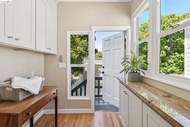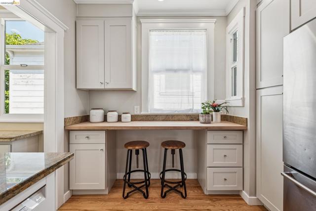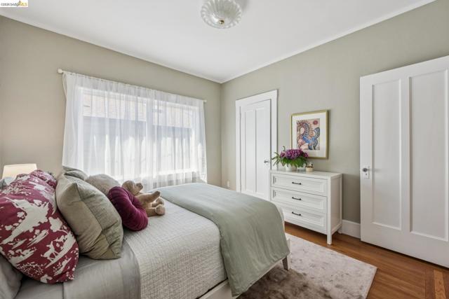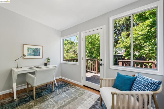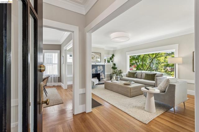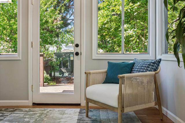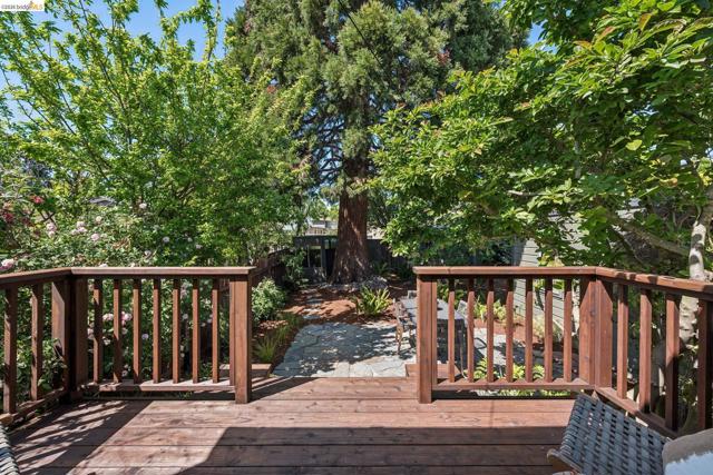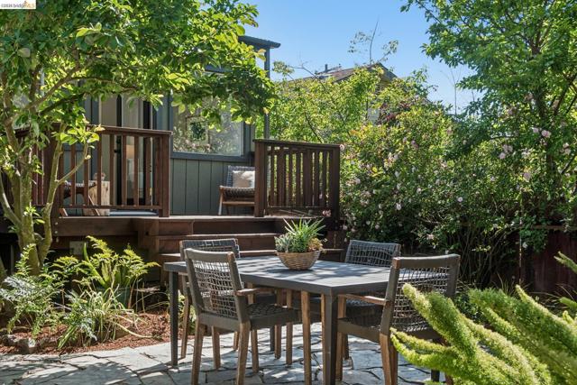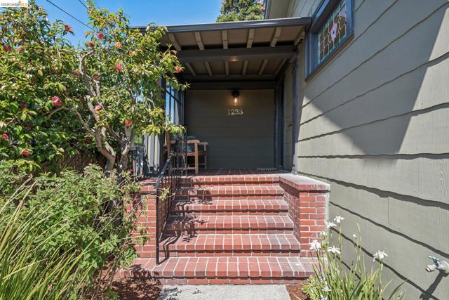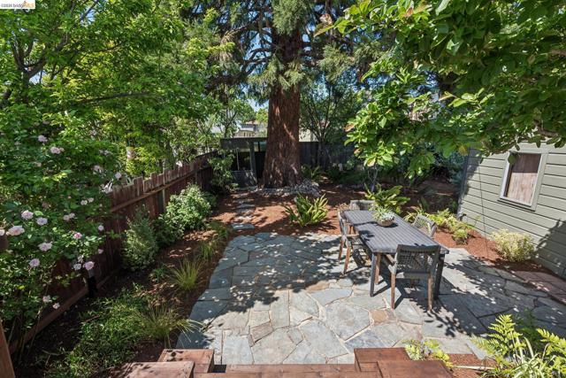 A Carleton Classic. Through a rose-draped arbor sits a bungalow of real architectural character. Tapered pilasters flank a picture window and meet at the roofline peak; a broad brick porch with fine Craftsman details welcomes you in. Inside, the foyer opens to a light-filled living room anchored by a fireplace with a raw-edge granite surround that reads like art. The gracious formal dining room flows into a cook's kitchen with a high-end Fisher & Paykel range and room for a friend to pull up a stool. Two bedrooms and a generously-sized full bath (with a spot perhaps for another partial bath) make up the private wing, with an enclosed porch turned home office opening to a deck and the back garden. The oversized lot is presided over by a majestic sequoia, with Japanese maple, magnolia, roses, and a striking protea among the mature plantings. Large detached garage (a great workshop, or a spot for a future ADU?). Updated electric, solar, copper plumbing, dual-pane windows, and a newer roof. Berkeley Bowl, great coffee, and West Berkeley's thriving food and arts scene are all nearby, with a bike boulevard at the corner, San Pablo Park blocks away, and BART just over a mile. Home energy score 7.