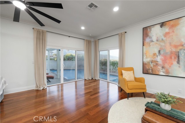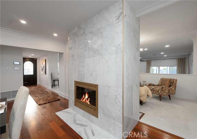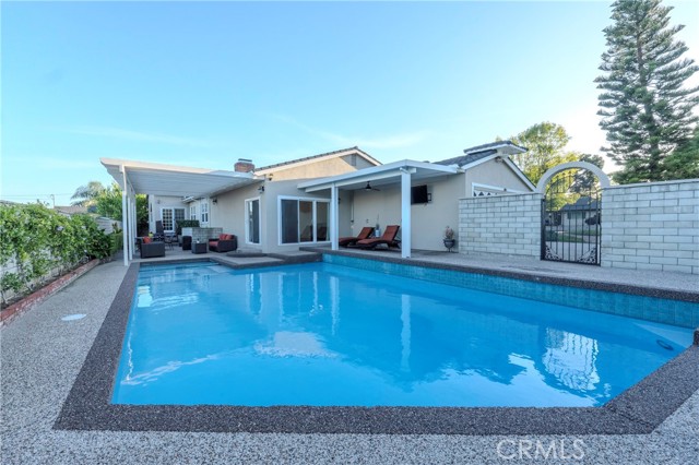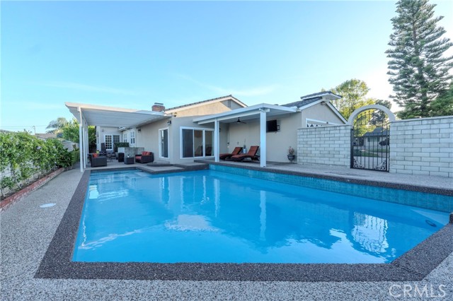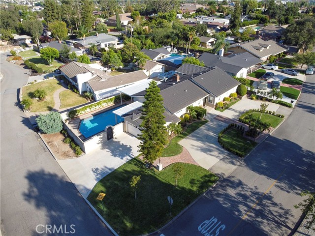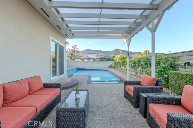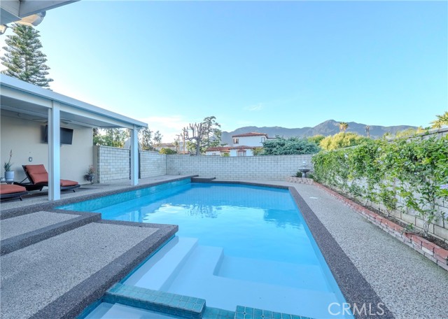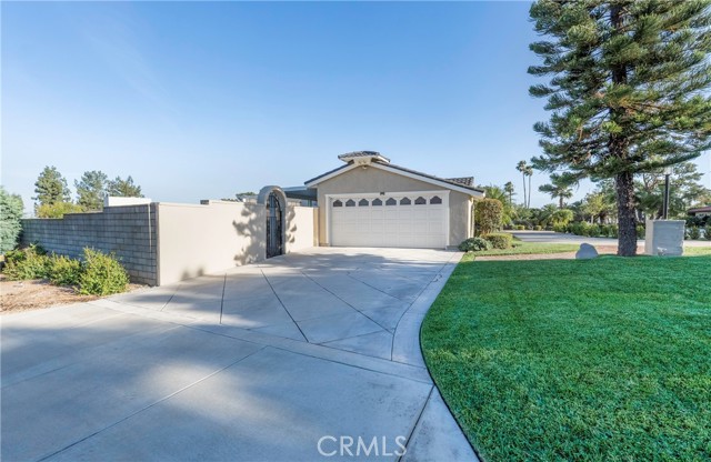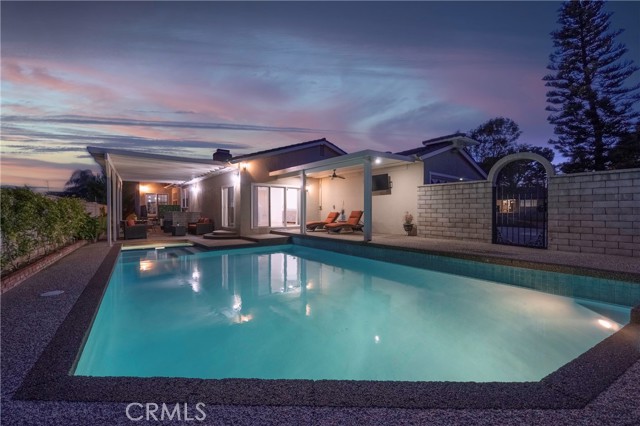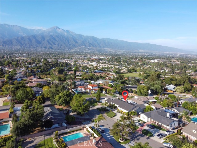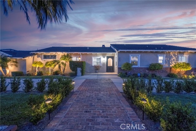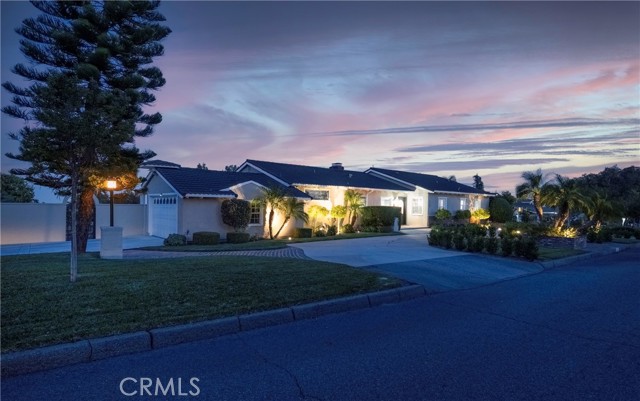 Experience refined California living in this beautifully reimagined single-story Spanish-style ranch, ideally located in the prestigious Red Hill Country Club area. Positioned on an expansive corner lot, this 3-bedroom, 3-bath residence captures sweeping mountain views and twinkling city light vistas. Thoughtfully remodeled within the past 18 months, the home showcases an open-concept kitchen with limestone flooring, designer-updated bathrooms, refinished wood floors, fresh interior paint, curated lighting, upgraded plumbing, and a new electrical panel. A striking double-sided marble fireplace elegantly anchors the formal living and dining spaces, creating a seamless blend of warmth and sophistication. The spacious primary suite offers a private retreat with a generous bath and walk-in closet, while the inviting family and entertainment area with custom built-ins enhances everyday living. Outdoors, a serene backyard oasis awaits, complete with a pool and spa—perfect for relaxing or hosting under the Southern California sky. Additional features include a premium Decra metal roof and EV charging. Ideally situated near Red Hill Country Club, fine dining, shopping, and convenient freeway access, this home represents a rare opportunity to enjoy elevated living in one of the area’s most coveted neighborhoods.