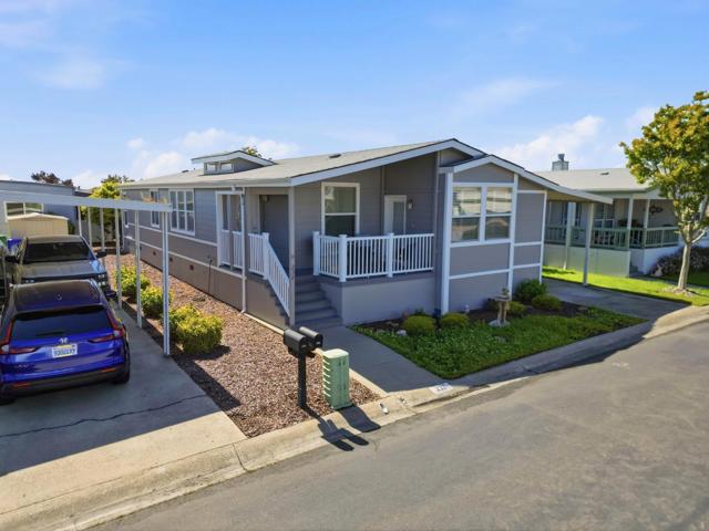 Location, location, location! Welcome to 232 Santa Susana in San Leandro, located in the highly sought after Mission Bay 55+ community, built around lifestyle and connection. This stunning manufactured home is one of the largest in the community, offering the perfect blend of comfort, convenience, and community. This thoughtfully designed 3 bedroom, 2 bath home features new interior and exterior paint, a charming new front porch with rails and Trex decking, and easy access to the kitchen and spacious living room filled with natural light. Enjoy soaring vaulted ceilings, expansive windows with elegant plantation shutters, skylights, and a cozy gas fireplace that adds warmth and character. The living and separate dining areas flow seamlessly into an inviting eat in kitchen with abundant cabinetry, generous counter space, and plenty of natural light from large windows and a ceiling skylight. The spacious primary suite offers a large walk-in closet and a spa inspired bathroom with a soaking tub, separate shower, and vanity. Two additional bedrooms, a full hall bath, and a laundry room with built in cabinetry complete the well-designed floor plan. Mission Bay offers a resort style with many amenities. Live where every day feels like a getaway! Schedule a tour before it's too late!