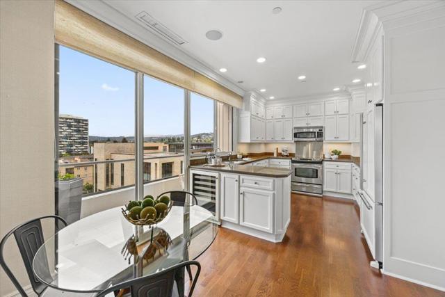 Welcome to luxury living at the Towers in the heart of San Mateo! This stunning 2BR/2.5BA condo offers an expansive 2,800 SF of modern elegance. Step inside to find high ceilings, sleek hardwood floors, recessed lighting, and plenty of natural light streaming through a multitude of windows. The open layout features a spacious foyer, formal dining room, and a cozy library/den, perfect for working from home or unwinding. The sunlit kitchen is complete with a breakfast nook, cooktop, range hood, dishwasher, refrigerator, and even a wine cooler for entertaining. The private primary ensuite boasts a walk-in closet, a large shower and generous primary bedroom. A small private patio off kitchen offers a serene outdoor space, while the building includes shared rooftop deck, patios, and common outdoor areas. Amenities include pool/spa, sauna, gym, game room, and media/recreation room. With a doorman, elevator access, & security features like an electric gate and voice intercom, convenience and peace of mind are yours. Add'l features include central AC/heating, an in-unit washer/dryer and private storage Located near downtown San Mateo, this condo combines convenience, style, and easy access to downtown restaurants, shops and library