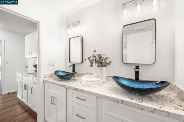One of the original Blackhawk estates w/$1 million in updates & features. A sparkling single-level gem near the private East Bay Country Club’s main gate & steps from Lakeside Clubhouse & golf course. 4000+/-SF on .4-acre corner lot. 5 bds. 4 bths. Soaring ceilings. Fresh int/ext paint. Walnut stained oak hardwd flrs. Solar panels. New roof. Double iron/glass frt dr. Elegant foyer. Step down to formal living rm w/gas frpl, stone surround. Adjacent formal dining rm w/garden views. All new chef’s kitchen. Granite counters/bksplsh. Soft-close cabinetry. Bosch dual ovens, dual dishwashers, Smart electric cooktop, refrigerator. Island/bkfst bar. Casual dining w/French dr to pvt terrace. Large fam rm w/frpl. 3 sets of French drs open to bkyd deck, patios, pool, spa, gardens. Large bonus rm ideal for game/media rm w/bkyd access. Primary suite has vaulted ceiling, sitting rm, bkyd access. En suite w/dual-sink vanity, dual walk-in closets, step down shwr w/dual shwrhds. Add’l bdrm suite. 3-car garage, overhead storage. Laundry rm w/new w/d, sink, cabinets, granite counter. Whole house fan. Dual HVAC (1 new). New fencing/gates. Near Blackhawk amenities. Tennis/pickleball cts, fitness ctr, 2 golf courses, sprts complex. Close to shopping, dining, downtown, freeways, top-rated SRVUSD schls.