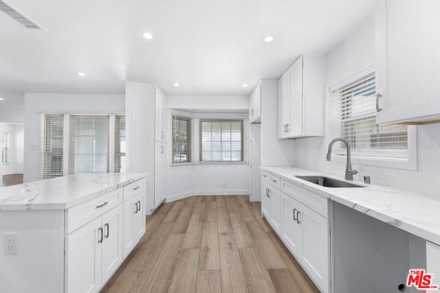 Nestled in the coveted "Avenues" neighborhood of Inglewood, this beautifully updated single-story residence offers 4 bedrooms, 4 bathrooms, and approximately 2,010 SQFT of living space on a generous 7,451 SQFT lot. Completely reimagined throughout and drenched in natural sunlight, the home features updated electrical and plumbing systems, paid-off solar panels (buyer to verify), fresh exterior stucco and paint, and quality finishes that make this a truly rare offering. An open floorplan is highlighted by updated windows, recessed lighting, a cozy fireplace in the living room and a light filled family room that overlooks a center island kitchen with quartz countertops and tons of cabinet space. The primary suite has a great closet space and fully remodeled private en suite bathroom with walk-in shower. There is also a junior suite perfect for extended family members or in-laws which also has its own private bathroom with tub and separate shower. The 4th bedroom leads out to an expansive deck that is perfect for outdoor relaxation or dining al fresco. Rear grounds are a blank canvas just waiting for your imagination and with room for possible pool. The detached 2-car garage presents exciting ADU potential - whether envisioned as a guest suite, private studio, office, or income producing unit - while the long driveway provides ample additional parking. Ideally located just minutes from SoFi Stadium, Intuit Dome, The Kia Forum, YouTube Theater, LAX, and the South Bay Beach Cities, with easy access to fabulous neighboring communities. As Los Angeles is set to host the 2028 Olympics, the timing and location couldn't be better! A prime Inglewood opportunity defined by proximity, quality, and lasting value.