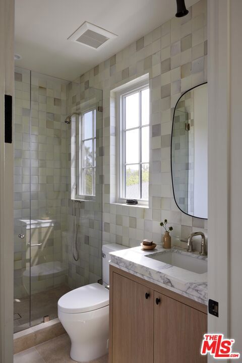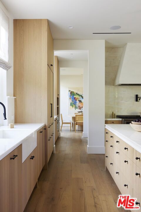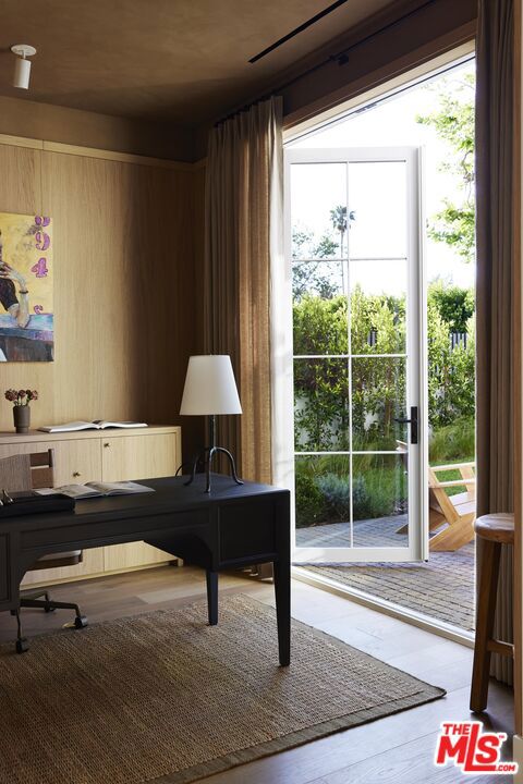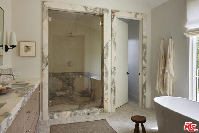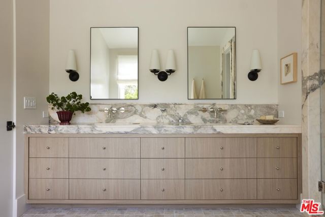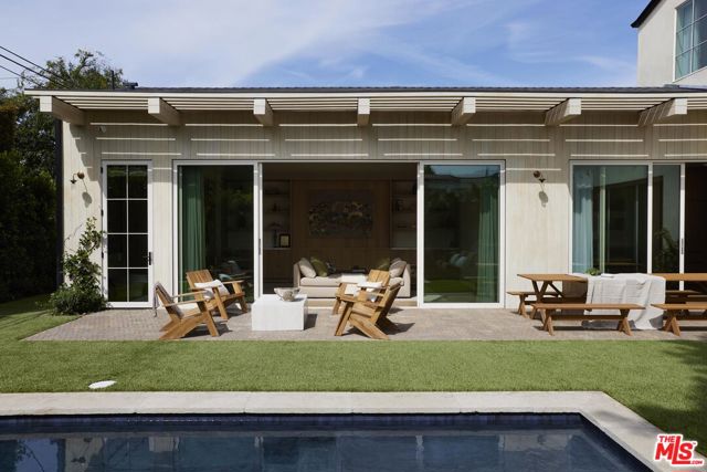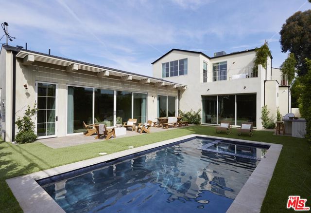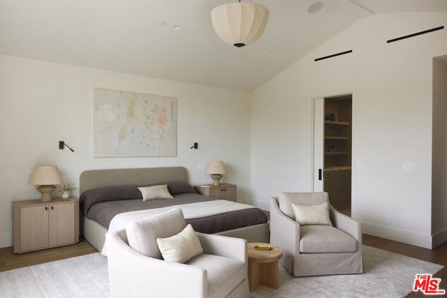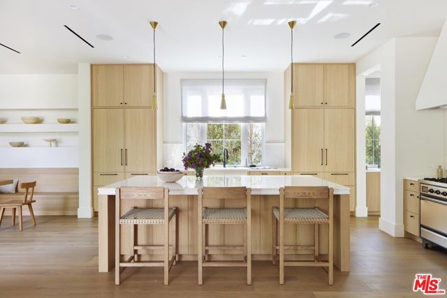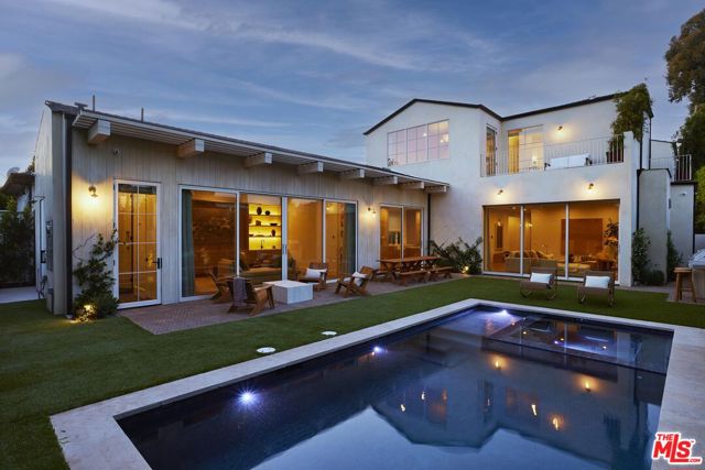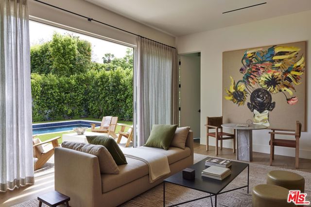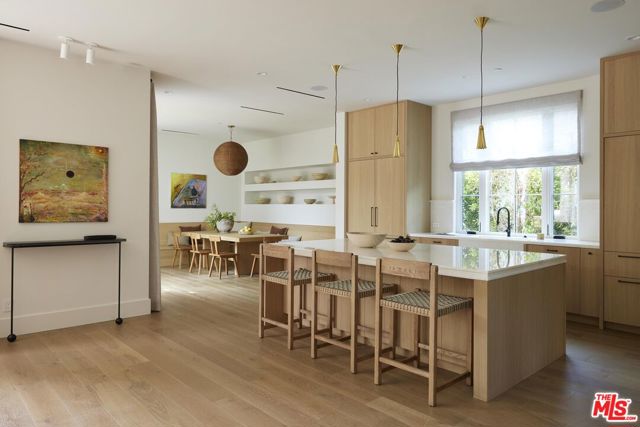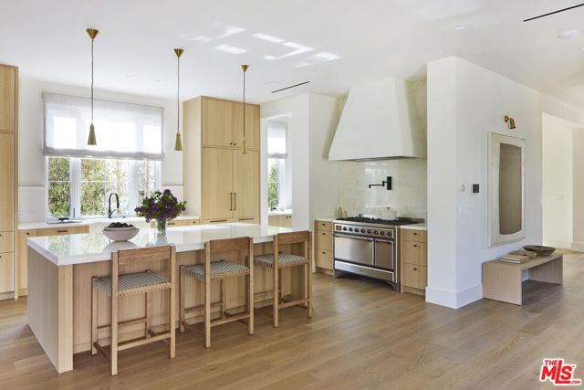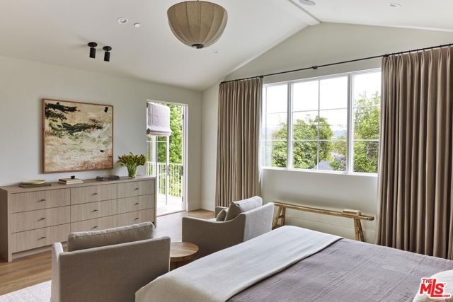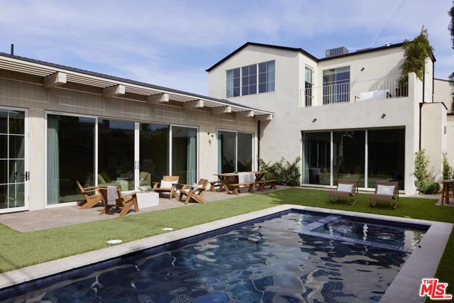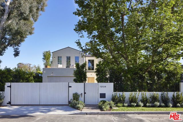 Set behind a gated driveway, 12128 Hesby Street showcases a striking, reimagined residence in the heart of prime Valley Village. Built by Jacob Levy of Concept Renovations and designed by Concept by C, this home offers 5 bedrooms, an office, and 5.5 bathrooms. This thoughtfully designed two-story home blends refined craftsmanship with airy, light-filled interiors. A beautifully landscaped front yard and generous driveway create an elegant first impression. Inside, warm-toned wood flooring guides you through a seamless layout, beginning with a sunlit office framed by French doors that open to a tranquil front patio. The formal dining room features expansive windows and flows effortlessly into the home's showpiece kitchen. Equipped with premium Thermador appliances, an ILVE Majestic dual-fuel range, the kitchen is anchored by an oversized island with seating, complemented by a secondary prep sink and a walk-in pantry. Adjacent to the kitchen, a custom banquette breakfast area and spacious living room form the heart of the home, where a sleek fireplace and floor-to-ceiling sliding glass doors create a seamless indoor-outdoor experience. Two main-level ensuite bedrooms, a well-appointed powder room complete the first floor. Upstairs, three ensuite bedrooms each offer private balconies, creating peaceful, private retreats. The primary suite is a true sanctuary, featuring vaulted ceilings, a generous walk-in closet, and a private balcony overlooking the backyard. Its spa-inspired bath showcases exquisite stone finishes, complete with a soaking tub, dual vanities, an oversized shower with bench seating, and a separate water closet. The backyard is designed for both relaxation and entertaining, highlighted by a resort-style pool and spa, expansive turf, and a built-in outdoor kitchen. Ideally located within the highly regarded Colfax Charter School district and just moments from premier dining and shopping, this exceptional home captures the essence of elevated, modern California living.