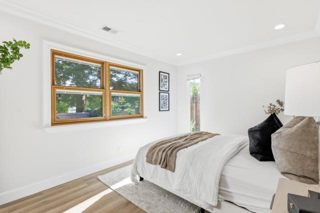 Beautifully renovated home on an expansive 8,000 sq ft lot in a prime Sunnyvale location! Move-in ready and filled with charm, this rare property offers a private, garden-inspired retreat surrounded by mature trees, colorful blooms, and fragrant roses. The bright and welcoming living room features large windows, recessed lighting, crown molding, and a cozy gas fireplace. The stunning remodeled kitchen showcases custom cabinetry, pantry storage, Silestone countertops, a chevron backsplash, stainless steel appliances, and a skylight that brings in abundant natural light. Thoughtfully upgraded with central A/C, new insulation, updated piping, owned solar, double-pane windows, and premium Pella triple-pane windows with built-in blinds for enhanced comfort and efficiency. Updated bathrooms and 4 generously sized bedrooms, including a comfortable primary suite. Enjoy exceptional outdoor living with beautifully designed pavers, outdoor kitchen/BBQ, fire pit, veggie beds, and a variety of mature fruit trees perfect for relaxing or entertaining year-round. Fantastic location just ~0.5 mile to parks, shops, dining & coffee, with easy access to 85, 280, 237 & 101 and close to major tech campuses. Top-rated schools! MUST SEE!