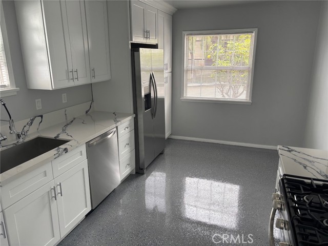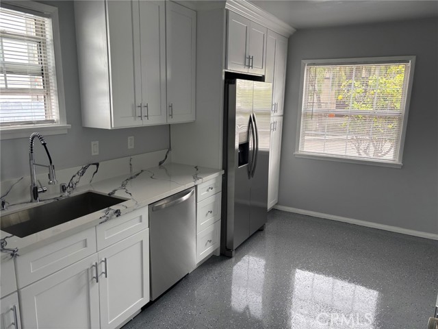 This Hermosa beach house has just been updated with new paint inside and out, new epoxy flooring, new kitchen cabinets with quartz countertops, new appliances (refrigerator, dishwasher, range, and microwave), new bathroom cabinet with quartz countertop, new toilet, new bright white coating on tub/shower enclosure, new mirror sliding closet doors, new ceiling fans, and new window blinds. Detached garage is very useful to store all of your beach equipment and bikes. Large backyard has artificial turf for low maintenance and is all fenced in for your pet. This is one of the quietest areas of Hermosa Beach and only a fifteen-minute walk to the beach.