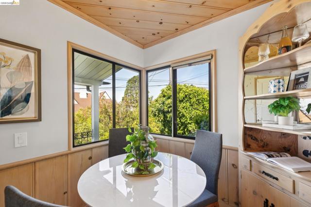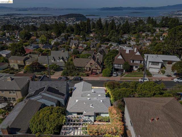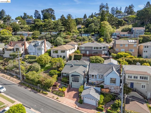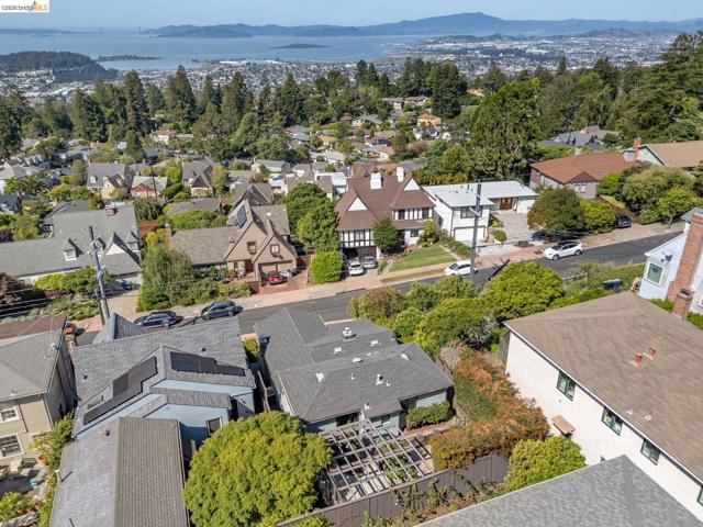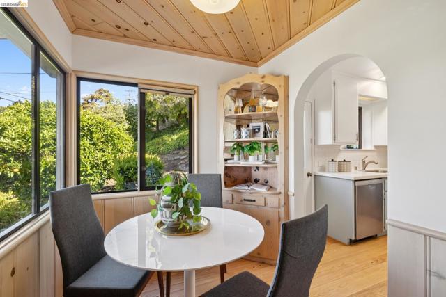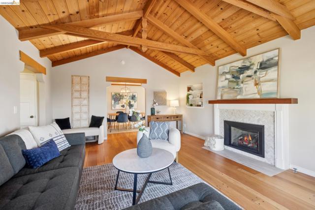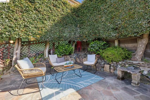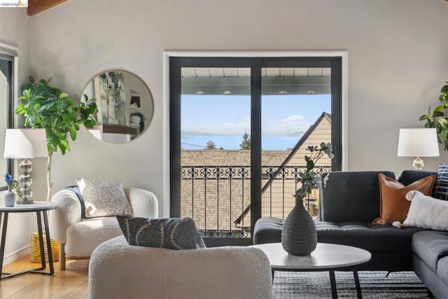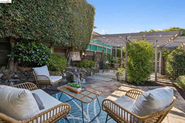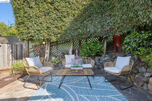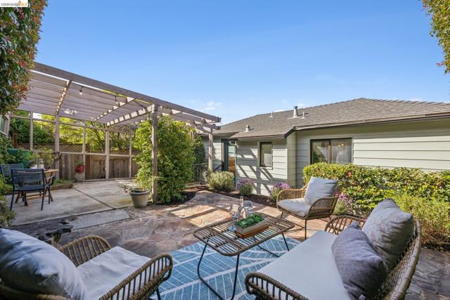 Step into storybook charm in this 2 bed, 2 bath Tudor Cottage, perfectly situated in one of Kensington’s most coveted neighborhoods—where tree-lined streets, Bay views, and a neighborhood village center meet everyday convenience. The sun-drenched living room features a beautiful vaulted, wood-beamed ceiling, built-in shelves, and a custom-designed fireplace hearth with gas insert, all framed by a stunning view of the Golden Gate Bridge. The updated kitchen has quartz counters yet maintains the home’s period character with a charming breakfast nook with built-ins and a lovely view of the SF Bay, perfect for morning coffee or evening sunsets. The primary bedroom has a luxurious ensuite bath added in 2016, showcasing a custom sink from Italy and elegant Moroccan-style marble tile, creating a boutique-hotel feel. The tranquil backyard has two patio areas, a pergola with lights, and thoughtful landscaping for relaxing and entertaining. Everyday comfort is enhanced by a spacious laundry room and a garage with ample storage, while the brickwork driveway adds timeless curb appeal. Located just one block from Kensington Elementary and moments from the shops and restaurants along Arlington, this home also offers easy access to Tilden Nature Area trails for hiking and outdoor recreation. The trailhead for Ye Olde School Trail, offering beautiful views of Wildcat Canyon, is just up the road. Come home to breathtaking views and the rejuvenating peace of Tilden Park nearby.