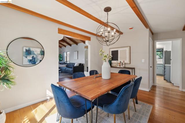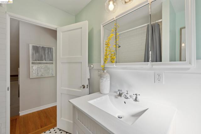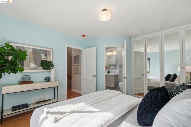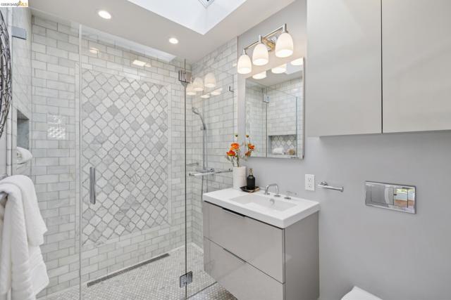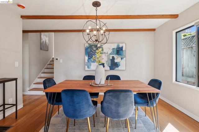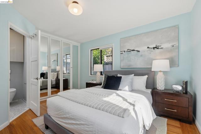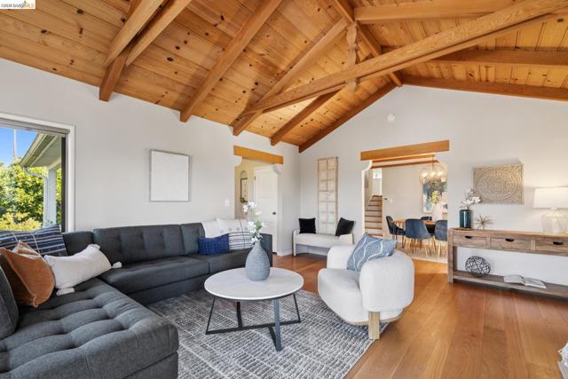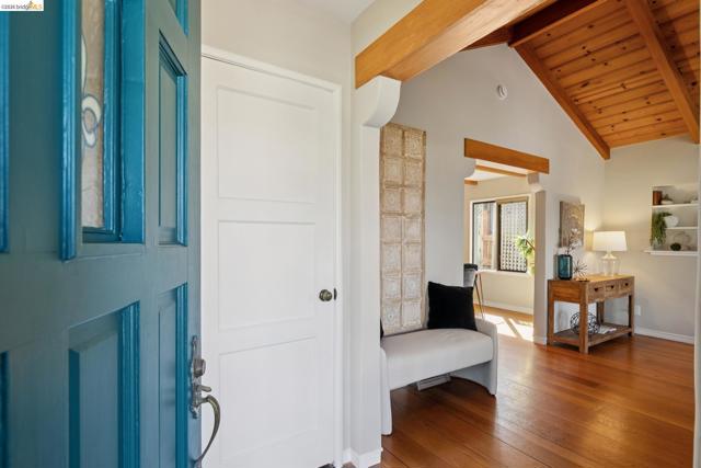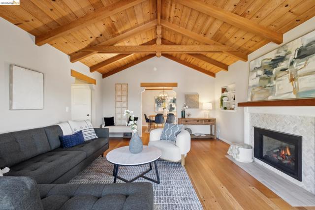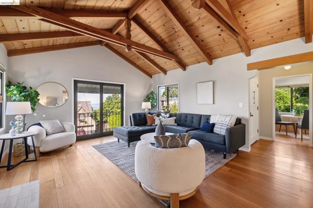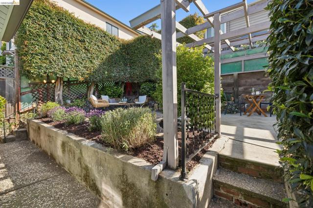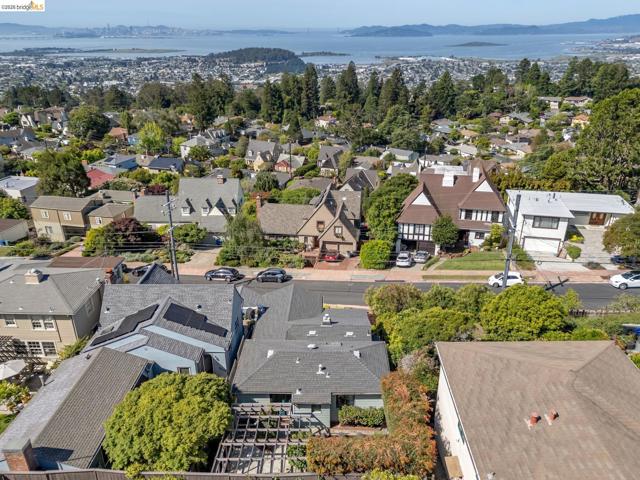 Step into storybook charm in this 2 bed, 2 bath Tudor Cottage, perfectly situated in one of Kensington’s most coveted neighborhoods—where tree-lined streets, Bay views, and a neighborhood village center meet everyday convenience. The sun-drenched living room features a beautiful vaulted, wood-beamed ceiling, built-in shelves, and a custom-designed fireplace hearth with gas insert, all framed by a stunning view of the Golden Gate Bridge. The updated kitchen has quartz counters yet maintains the home’s period character with a charming breakfast nook with built-ins and a lovely view of the SF Bay, perfect for morning coffee or evening sunsets. The primary bedroom has a luxurious ensuite bath added in 2016, showcasing a custom sink from Italy and elegant Moroccan-style marble tile, creating a boutique-hotel feel. The tranquil backyard has two patio areas, a pergola with lights, and thoughtful landscaping for relaxing and entertaining. Everyday comfort is enhanced by a spacious laundry room and a garage with ample storage, while the brickwork driveway adds timeless curb appeal. Located just one block from Kensington Elementary and moments from the shops and restaurants along Arlington, this home also offers easy access to Tilden Nature Area trails for hiking and outdoor recreation. The trailhead for Ye Olde School Trail, offering beautiful views of Wildcat Canyon, is just up the road. Come home to breathtaking views and the rejuvenating peace of Tilden Park nearby.