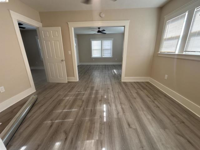 Pittsburg location close to schools, shopping, BART and freeway! Corner lot! Enclosed rear patio! 2 Bedroom house close to downtown. Double pane windows, updated bathroom and kitchen. Stove, refrigerator, separate laundry room, new flooring and paint throughout, single car garage and off-street parking, paved backyard, and close to BART.