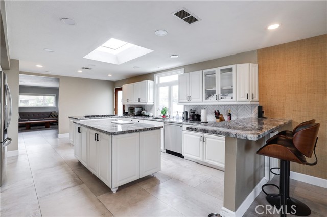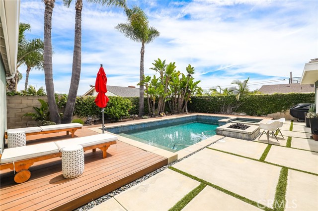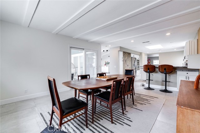 Located in Dana Point, this 3-bedroom, 2-bath home blends modern finishes with inviting living spaces. An open floor concept features high vaulted ceilings, recessed lighting, a skylight in the living room and abundant natural light throughout. The kitchen offers stainless steel appliances and a breakfast bar, while laminate flooring stretches across the main living areas. A fireplace provides a focal point for the living room, and the master bedroom includes its own dining room adjacency. Outside, a private in-ground pool, a beautiful backyard with a backyard fire-pit, and multiple areas for relaxation create an ideal setting for outdoor enjoyment.