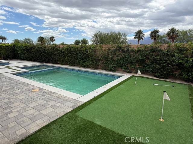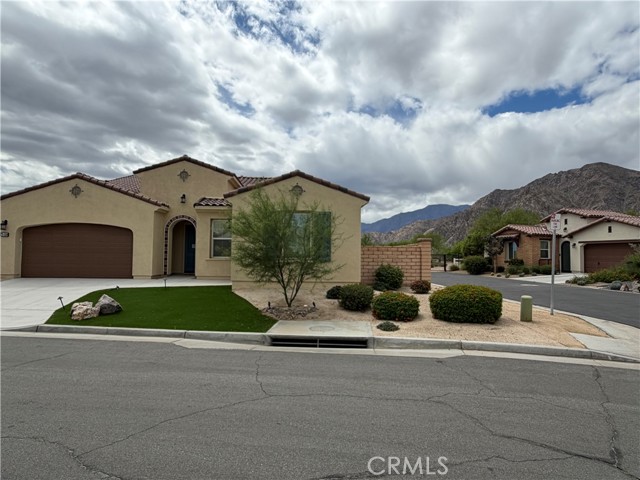 Welcome to this highly sought-after gated community of Floresta in La Quinta. This beautifully appointed single-story residence offers an exceptional blend of luxury, comfort, and convenience in one of the area’s most desirable locations. Ideally situated at the corner of Avenue 52 and Jefferson, this newer community is directly across from the renowned SilverRock Resort, a mile from PGA West and just a short bike ride to charming Old Town La Quinta, where boutique shopping, dining, and entertainment await. Set against breathtaking south-facing mountain views, the home enjoys a stunning natural backdrop with a landscaped basin and walking trail just beyond the property. Inside, the light-filled open floor plan showcases a stylish kitchen featuring quartz countertops, stainless steel appliances, and abundant cabinetry. The kitchen flows seamlessly into the spacious great room, complete with a dining area, cozy fireplace, and sliding glass doors that open to the backyard patio. There, you’ll find the perfect setting to relax beside the large spool while taking in the spectacular scenery. The primary suite serves as a private retreat, offering an elegant ensuite bath with dual vanities, a soaking tub, separate shower, and a custom-organized walk-in closet designed for both style and functionality. Additional highlights include a convenient powder room, an oversized laundry room with generous storage, and a three-car garage providing ample space for vehicles and storage needs. Residents of Floresta also enjoy access to outstanding community amenities, including a resort-style pool and spa, as well as an inviting clubhouse with entertaining space.