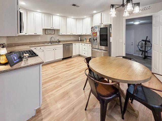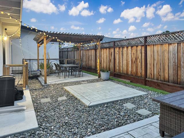 Welcome to 690 El Cerrito Way in Gilroy! This 3 bedroom, 1.5 bathroom home offers 1,420 sqft of living space on a 6,200 sqft lot with thoughtful updates throughout and no HOA. The light-filled kitchen features ample cabinetry, stainless steel appliances, and opens to a cozy dining area. The spacious living room showcases updated flooring and a modern fireplace feature wall, creating a warm and inviting atmosphere. Laminate flooring runs throughout the home. Both bathrooms have been tastefully updated, including a stylish full bath with a sleek vanity. A versatile bonus room provides the perfect space for a home gym, office, or additional living area. Bedrooms are well-sized, with unique accent walls adding character. Enjoy central A/C and solar for year-round comfort and efficiency. Step outside to a low-maintenance backyard with a pergola-covered patio, ideal for entertaining or relaxing evenings. Conveniently located near Alehouse Bar & Grill, Pineapple Village, and nearby grocery stores, with easy access to commuter routes, this home is a great blend of comfort, style, and functionality.