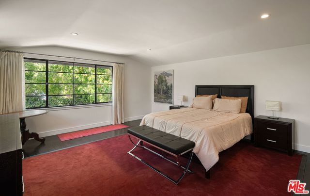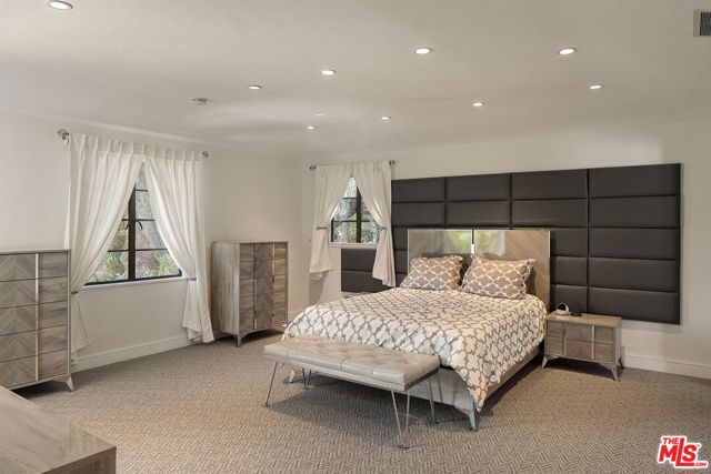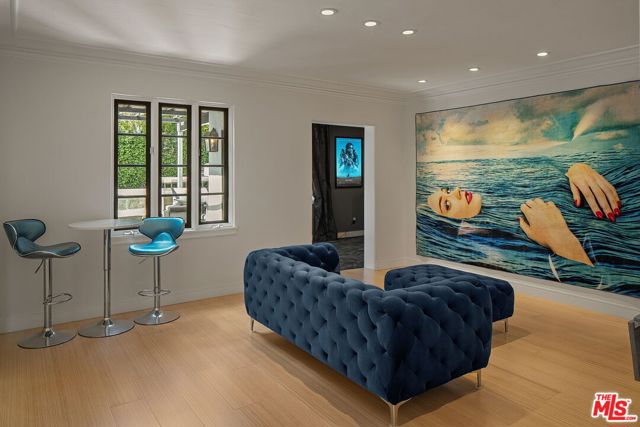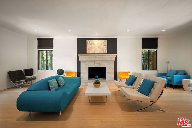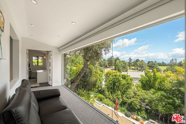 Perched in one of Westwood's most coveted enclaves Comstock Hills, this stunning contemporary residence at 1323 Club View Drive offers sweeping panoramic views over the Los Angeles Country Club, glittering city lights, and majestic mountains beyond. Spanning 4,839 square feet, this impeccably designed 6-bedroom, 7-bathroom home welcomes you with warm wood floors and expansive, light-filled living spaces framed by oversized windows that capture serene garden greenery. A gracious foyer flows into a sophisticated living room anchored by a travertine fireplace, leading seamlessly to a formal dining room and a fully renovated gourmet kitchen beneath soaring vaulted ceilings. Designed for both entertaining and everyday living, the kitchen features a large seated island, premium Viking and Sub-Zero appliances, and direct access to outdoor patios. The main level also features a state-of-the-art home theater with 7-speaker surround sound, a guest suite, and access to a versatile lower-level den. Upstairs is an exceptional primary retreat complete with a spa-inspired bathroom featuring a steam shower, soaking tub, and a private sitting area with an oversized picture window showcasing breathtaking views. A loft-style office with built-ins and an upstairs laundry area add convenience and functionality. The private backyard is a true oasis, enveloped by mature hedging and lush landscaping with a natural lawn. Multiple outdoor entertaining areas include a flagstone patio with a fire pit and automatic shades, a tranquil water feature, and an alfresco dining space with built-in banquette seating. Ideally located just moments from Beverly Hills, Westwood Village, premier shopping and dining, and within the highly sought-after Fairburn Avenue Elementary School bounds, this remarkable residence delivers lifestyle and location in one of Los Angeles' most prestigious neighborhoods.