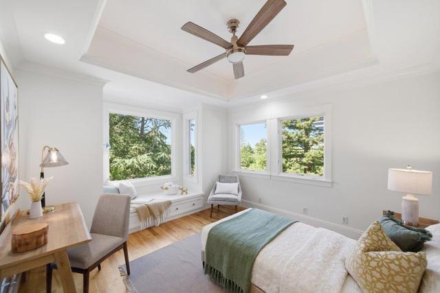 Welcome to a beautiful home in one of the most sought-after pockets of Los Altos Hills. Stroll into town for coffee, dinner, or a bit of shopping. Plus, a hidden bonus: school-age children can take a quiet back pathway at the end of the cul-de-sac to Gardner Bullis Elementary. Built in 2003, this custom home was thoughtfully designed with an open floor plan, quality craftsmanship, and attention to detail throughout. Soaring ceilings, rich wood accents, and charming window seats create warm, inviting spaces while framing stunning views of the Eastern Hills and the valley below. Tucked away in a peaceful setting with no highway noise, the home feels like a private retreat, yet its less than a mile from the Village of Los Altos. The flexible layout offers 3 or 4 bedrooms, an upstairs home office, and a separate bonus space ideal for a gym, art studio/hobby room. There are 3.5 bathrooms, a spacious laundry room, and an oversized two-car garage with EV hookup and extra room for storage/workshop. The main home spans approximately 3,592 square feet, with a 648-square-foot garage, all set on a generous one-acre lot (43,560 square feet). There may also be potential to add an ADU or guest house, buyers are encouraged to explore options with the Town of Los Altos Hills.