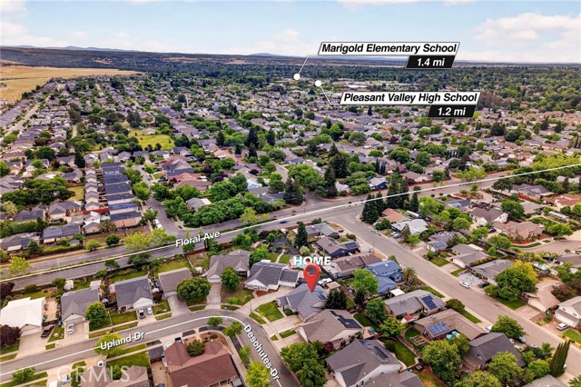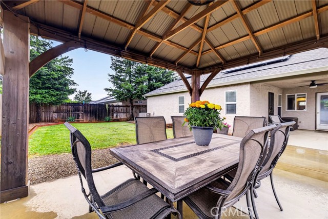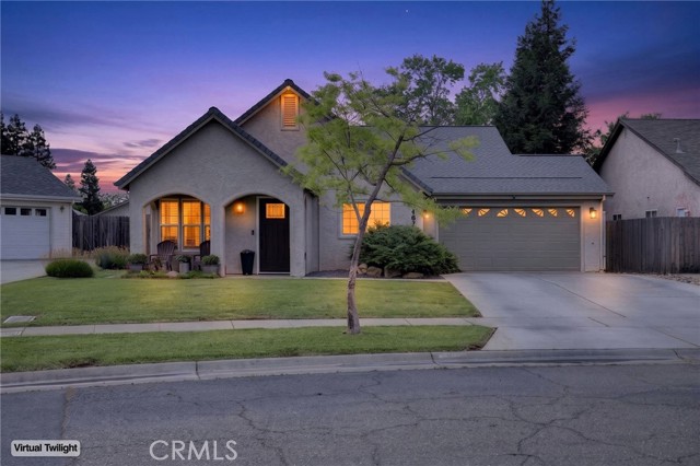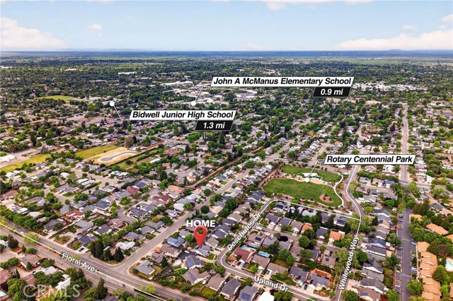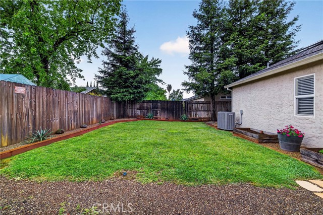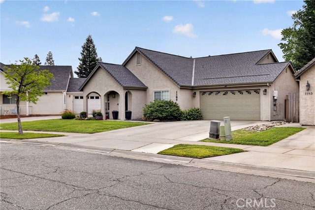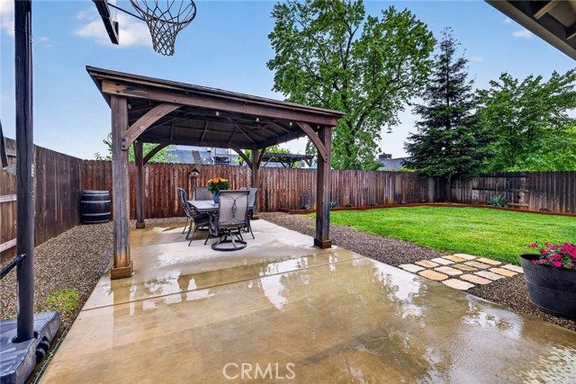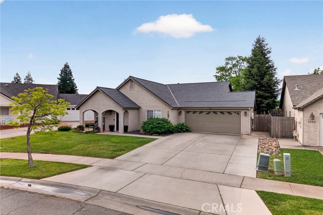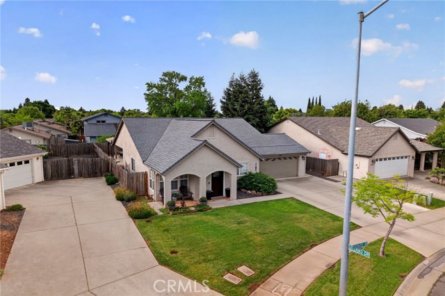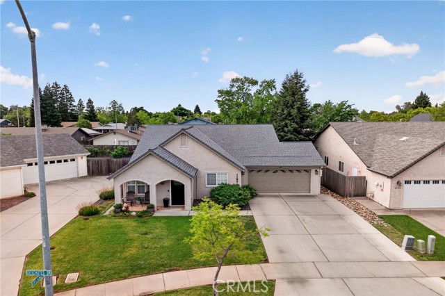 This North Chico home just a short walk to the new Rotary Centennial Park has it all: 4 bedrooms, 2 bathrooms, a new composition shingle roof, a new LENNOX HVAC system, new water heater and solar! From the moment you drive up to this home you will appreciate the extra wide driveway and the crisp curb appeal! As you enter through the front doors an open concept living room greets you with cathedral ceilings, laminate flooring, and a kitchen with stainless steel appliances and an eat-in bar with convenient access to the backyard for covered patio BBQ's! The primary suite is extra spacious and offers a walk in closet, vaulted ceilings, a tub/shower combo and an additional access point to the backyard. All of the bedrooms and main living area boast ceiling fans for extra energy efficiency and the home offers a dedicated laundry room off the hallway. The backyard of this home is also an absolute delight with a covered patio that flows to the gazebo area that overlooks the lush grassy yard. Additional side yard space is also an added benefit to this yard which flows conveniently to the garage. The garage is completely finished with epoxy floors and ample storage including a pull down ladder for extra storage in the attic. This home has a lovely, quiet cul-de-sac feeling location that is close to schools, shopping, dining, and the beautiful new Rotary Centennial Park! You have to see this property to truly appreciate it.