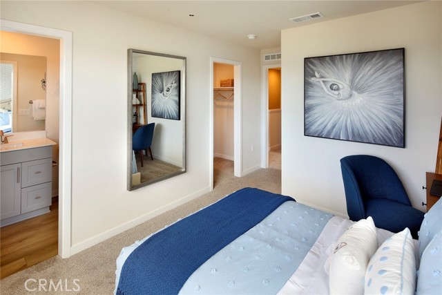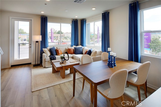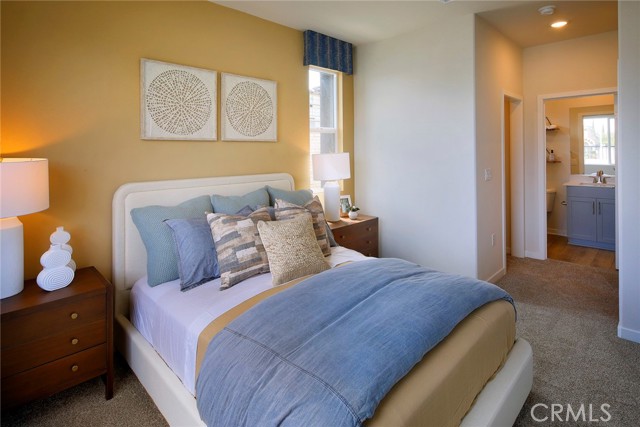 Welcome to Sagecrest by Century Communities! This beautiful Tri-level Gated townhome community is located in the heart of Riverside close by the 91 freeway right off Van Buren Blvd. very close to shopping, restaurants and California Baptist University as well as UC Riverside. After walking through your private patio, you will enter to the first floor you will find a jr. suite with its own walk-in closet and full bathroom. Heading up to the second floor you enter a spacious Kitchen with a large island and dining area open to living room which has a large private balcony with city views. The kitchen features " Aria Stone Gray" cabinets, quartz counters and a stylish backsplash. The second level also includes a bedroom and full bathroom. Going up to the third level you will find a spacious Owner's Suite which includes large bathroom with double sinks, walk-in shower and walk-in closet. Finishing the 3rd level there's an additional bedroom with its own private bathroom and walk-in closet. Laundry room is also on third level. Come see this amazing community, Sagecrest is a Gated Community and will include a playground, dog park, shade structures and BBQs and more!