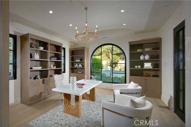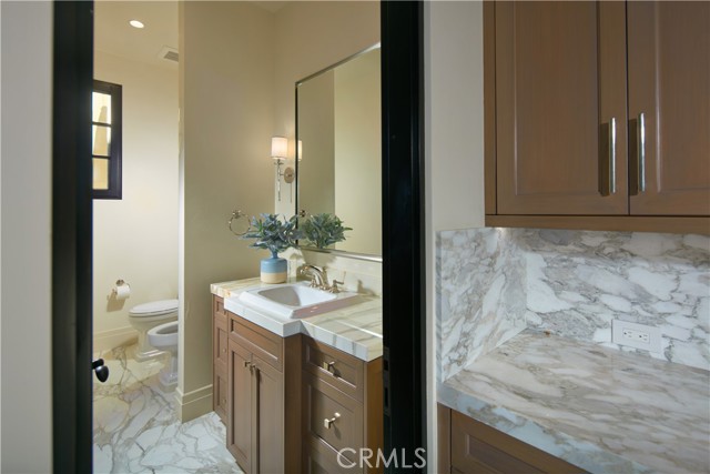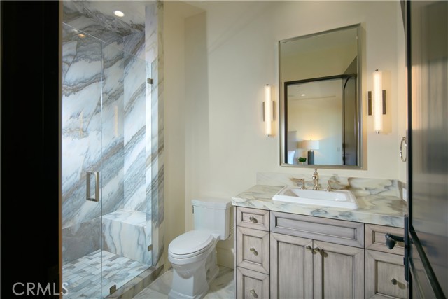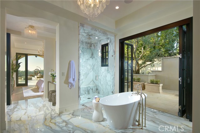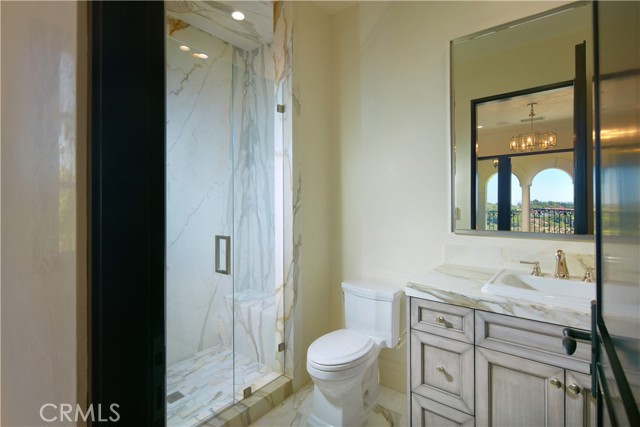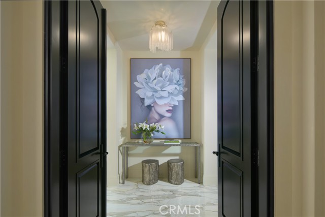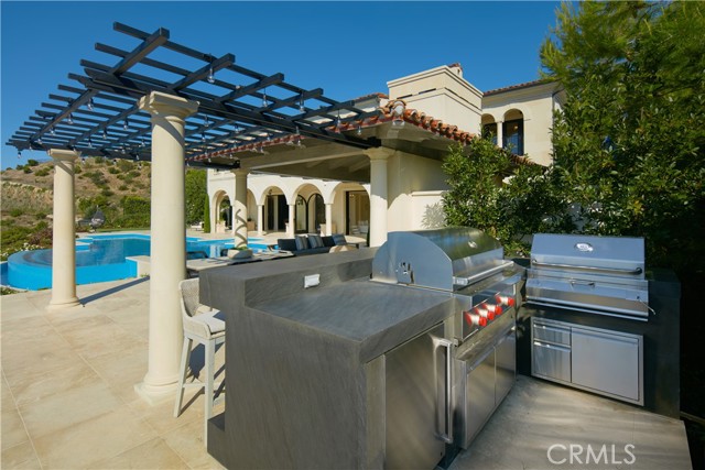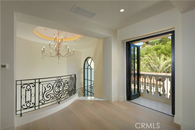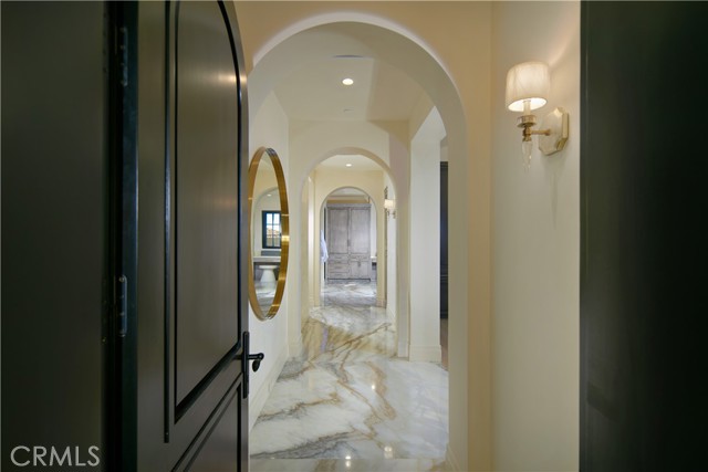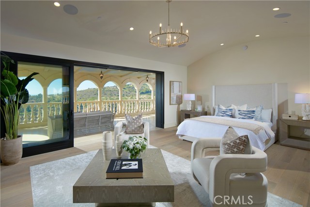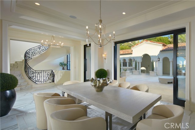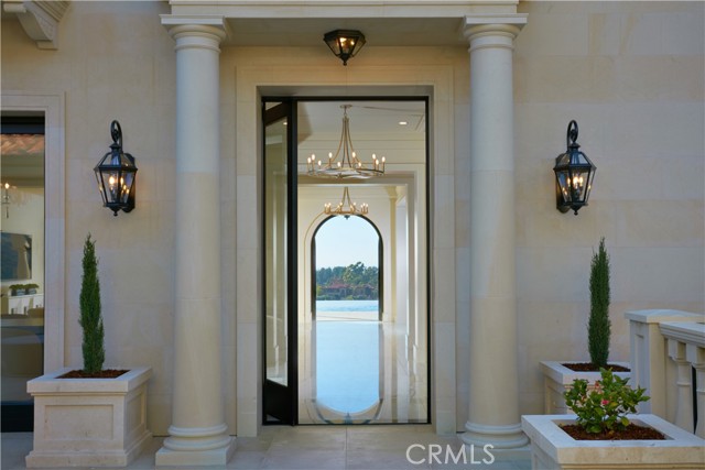 Crowning a coastal hill at the end of a private cul-de-sac behind double gates of the exclusive Estate Collection at Crystal Cove, this custom home is located on one of the most coveted streets in all of Newport Coast. Recalling the timeless prestige of a classic northern Italian villa, the grand residence is carefully positioned to capture breathtaking views. Impressive indoor and outdoor living areas frame panoramic vistas of the Pacific Ocean, Pelican Hill Golf Course, Newport Beach's harbor and channel, a verdant canyon, and romantic sunsets. First impressions are incomparable, with an oversized gated entry courtyard overlooking a lower-level courtyard and providing a private space for outdoor socializing, welcoming guests, and relaxing as the sea air refreshes. Served by a commercial-grade Garaventa Lift and highlighted by a stunning iron spiral staircase, the three-level residence embraces appx. 4,090 SF of balconies, decks, and courtyards, and appx. 11,765 SF of interiors which host seven en suite bedrooms and eight full and three-half baths. Enrichments include generously proportioned formal living and dining rooms, an office, wine cellar, 15-seat home theater, gym, maid's suite, guest house with private entrance, a secondary primary suite on the main level, and a subterranean garage spanning appx. 4,763 SF that can fit up to 15 cars. Calacatta marble flooring continues from living areas to a chef-inspired kitchen with top-of-the-line appliances, an oversized island, calacatta marble countertops, loggia, butler's pantry, and breakfast room. The primary suite opens to a covered ocean-view loggia and reveals an enormous walk-in closet, stone fireplace, espresso bar, and a luxurious five-star bath. Cantera limestone imported from Spain embellishes the exterior, while the interior offers Venetian plaster, Albertini windows and doors, book-matched Carrara marble, glass pocket doors to the outdoors, and custom alder cabinetry. Sparkling lights shine after dusk and lend enchantment to a massive vanishing-edge pool with glass tile, a fireplace-warmed cabana, loggias, large patios, and a built-in outdoor kitchen with a BBQ.