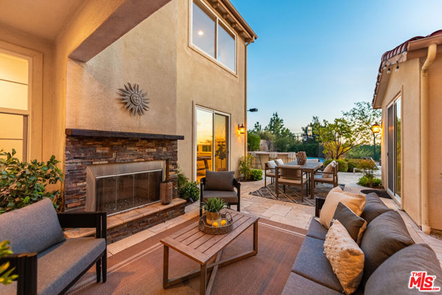Situated at the end of a quiet cul-de-sac in one of Simi Valley's most desirable neighborhoods, this private estate offers stunning sunset and mountain views on an oversized lot. Designed for both comfort and elevated living, the home is filled with natural light and features freshly painted interiors, creating a bright and refined atmosphere throughout. A grand formal living room with soaring 20-foot ceilings sets the tone, while the thoughtfully designed layout flows seamlessly into the dining area and a sunlit breakfast nook just off the kitchen. The kitchen is equipped with high-end appliances, a generous island and opens to the main living spaces, ideal for both everyday living and entertaining. Offering five bedrooms and a spacious bonus room, the home is designed with an ideal layout, including a main-level bedroom for guests or multigenerational living. Upstairs, the expansive primary suite serves as a private retreat, complete with a separate sitting area, private enclosed balcony with panoramic views and an oversized walk-in closet. The home's layout creates a natural connection to the outdoors with living spaces oriented around the backyard for effortless indoor-outdoor living. Designed for both relaxation and recreation, the grounds feature a pool and spa heated by a fully paid-for solar system, a sports court and multiple areas to enjoy the surrounding landscape and stunning sunset views. Complete with a three-car garage, this is a rare offering that combines privacy, functionality and a layout perfectly suited for modern family living.