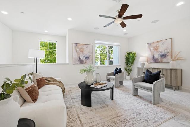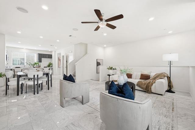 Welcome to this stunning townhouse located in the highly sought-after Communications Hill community. This beautifully designed home offers 4 bedrooms and 3.5 bathrooms, featuring a modern and comfortable floor plan. Fresh interior paint and brand-new carpet throughout. The first-floor suite with its own private entrance is perfect for multi-generational living or guests. The second level showcases an open-concept layout, complete with a modern kitchen featuring ample cabinetry, spacious countertops, elegant marble flooring, and surround sound speakers. The dining and living areas flow seamlessly. The third floor features a luxurious primary suite with an oversized walk-in closet, an en-suite bathroom with unobstructed view. Two additional bedrooms are bright and versatile. This home is loaded with upgrades, including a 220V outlet for EV charging, wall-wiring for TV mounts, stainless steel handrails, JMK shutters and recessed LED lighting throughout. Enjoy a prime location near a neighborhood park and just minutes from the iconic Grand Staircase. With easy access to major highways, close to many high-tech campuses, shopping and daily essentials just minutes away, this home offers both convenience and lifestyle. Don't miss the opportunity to make this beautiful home yours!