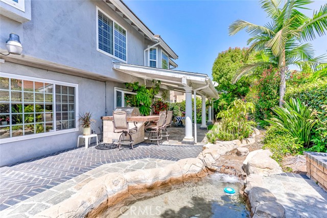This exquisite residence offers a rare balance of thoughtful design and impeccable flow. Every space has been meticulously crafted to reflect exceptional taste. Featuring a warmth and ambiance curated personally by the owner. The largest model in the prestigious "ISLAND" collection, This home is surrounded by the LOS COYOTES County Club, within walking distance of the golf course, "Just 5 Minutes Walking to Pro Shop". Set on a corner lot, you are welcomed by enchanting mature trees and vibrant blooms. Spanning 2,857 square feet, home provides 4 bedrooms and 2.75 bathrooms including a convenient bedroom and full bath on main floor. Upon entry, you are greeted by soaring ceilings and graceful spiral staircase. Formal living room boasts vaulted ceilings, cozy fire place and aesthetic harmony enhanced by softly diffused sunlight. Kitchen and family room offer serene view of the signature waterfall & lush greens in backyard, filling the home with peaceful energy. Kitchen has granite countertops, backsplash, charming garden window and recess lights. Pristine oak floors and travertine tile floors are combined in main floor, elegant crown moldings, double paned windows and sliding door though out. Master bedroom has walk-in closet & double sink vanity for his and hers, separate indoor laundry room, 3 car direct access garage with built in cabinets & full driveway. The picturesque outdoor area serves as tranquil retreat from the hustle and bustle of city life. Spacious Covered Patio with flagstones floors & BBQ area, Perfect for intimate gatherings, or entertain guests. Experience the sensory delight of the Landscape & water fall: The scent of the water saturated air and rich earth, the sight of crystal clear water turning into shimmering foam, and rhythmic thunderous melody of falls. Top tier schools(Sunny Hills High, Parks Jr, Sunset Elem), close to all, shopping, parks and restaurants.... "NO HOA", "NO MELLO ROOS" Make this treasure yours before it slips away!!!