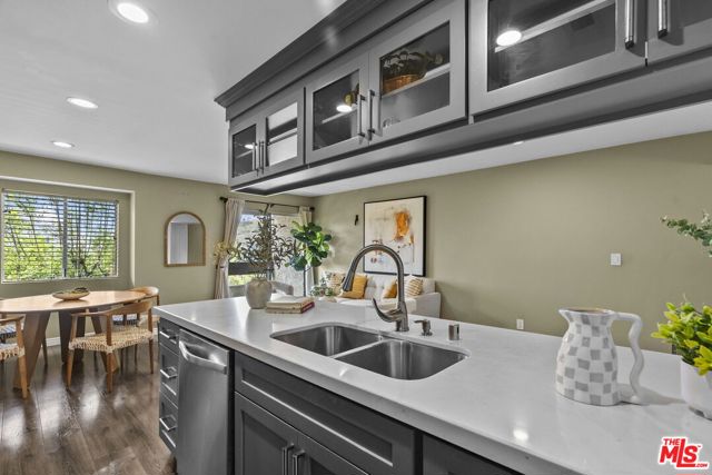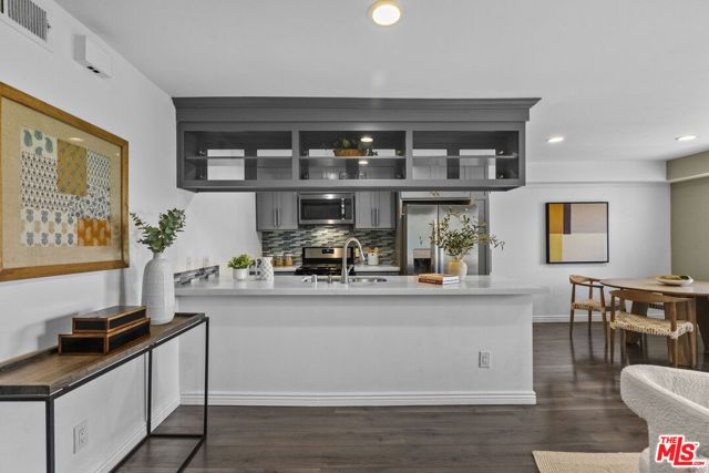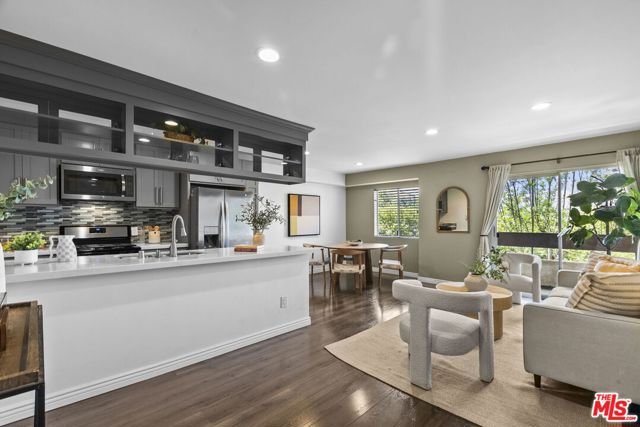 Tucked into the hillside of the Cahuenga Pass, this bright and inviting condo is in the gated Cahuenga Hills Tennis community, offering a peaceful retreat just moments from the city's energy. Situated in Building 3, one of the more private locations in the complex, the home enjoys a quiet, tucked-away setting with a true hillside feel. Inside, the space is filled with natural light and features an open, easy-flow layout ideal for both everyday living and entertaining. The updated kitchen is appointed with quartz countertops, stainless steel appliances, and bar seating that connects seamlessly to the living area. A private balcony extends off the living room, perfect for morning coffee or unwinding in the evening. The bedroom is generously sized with a walk-in closet and space for a desk or work-from-home setup. Additional features include central A/C and heat, keyless entry, covered parking conveniently located near the unit, and extra storage. Residents enjoy a resort-style atmosphere with access to pools, spa, tennis courts, fitness center, clubhouse, and guest parking. A nearby private trail offers scenic views of Lake Hollywood and the surrounding hills. Ideally located near Runyon Canyon, Franklin Village, the Hollywood Bowl, and with easy access to both the Valley and the rest of Los Angeles.
