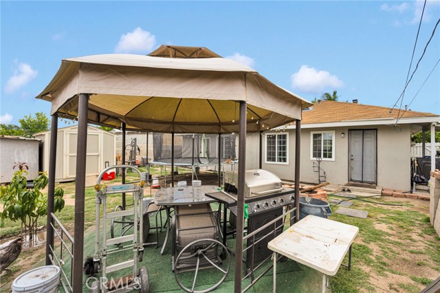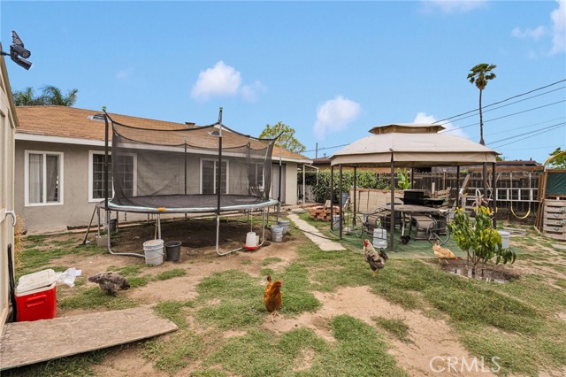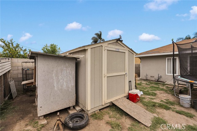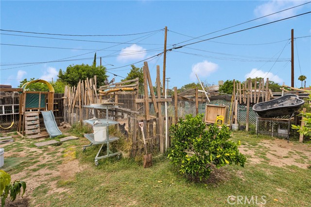 Charming single story home, well maintained with 3 Bedrooms 1 bathroom and a good size backyard to add on. Front yard is neatly maintained and fully fenced. This home has newer windows installed in 2023, exterior of the home has newer paint. The kitchen is modern and inviting with backsplash and granite counter tops, white cabinets with self-closing drawers. One of the bedrooms have newer water proof vinyl flooring and the bathroom has two-tone tile / backsplash in tub. The lot of the home extends from street to street with rear gate and street access. Backyard offers a paradise of fruit trees including guava, oranges, mangos, tomatoes and lemons and it also offers a chicken coop, a good size shed for extra storage, a gazebo and a swing set for the kids to play. Sprinklers valves were recently replaced. This home offers a complete blend of comfort and functionality. Centrally located near San Bernardino College, Shopping Center, Hospital, community Park and 210, 215 FWY's. Don't miss the opportunity to making this home yours !