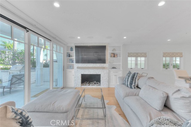 Stunning, fully remodeled canal-front residence in the heart of Naples. Designed with an open-concept layout, the home features a chef’s kitchen with quartz countertops, Sub-Zero refrigerator, and a spacious walk-in pantry. A custom garage is complemented by a well-appointed mudroom, while fireplaces in both the living room and primary suite add warmth and style. Seamless indoor-outdoor living is achieved with expansive sliding doors that open to a built-in BBQ and waterfront patio—ideal for entertaining. Each bedroom offers its own ensuite, including a luxurious primary suite overlooking the canal with a private balcony, double vanity, and walk-in closet. Two additional bedrooms also feature ensuite baths. Upstairs includes a convenient laundry room with ample storage and a versatile built-in desk area in the hallway. Rich hardwood floors run throughout the home, enhancing its modern coastal feel. Enjoy breathtaking canal views from the patio, perfect for hosting or relaxing, along with an open-water dock—ideal for boating and waterfront living.