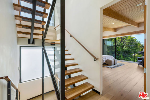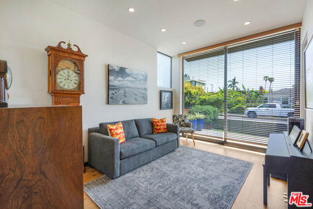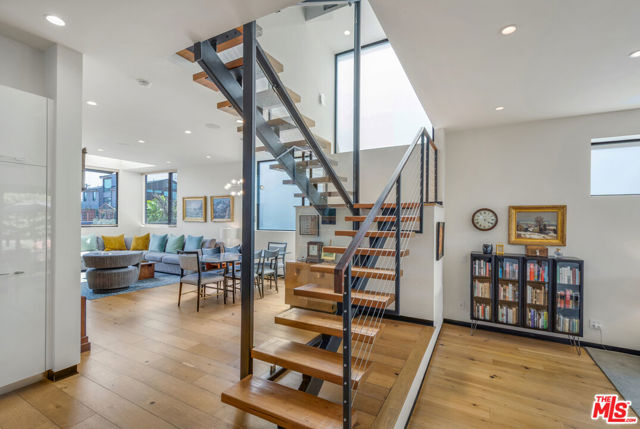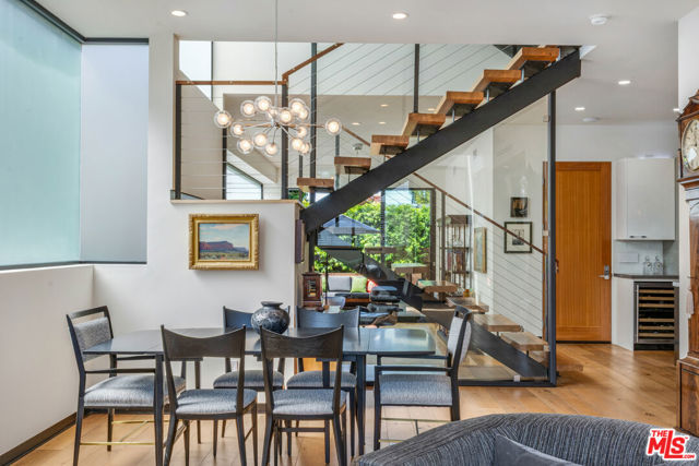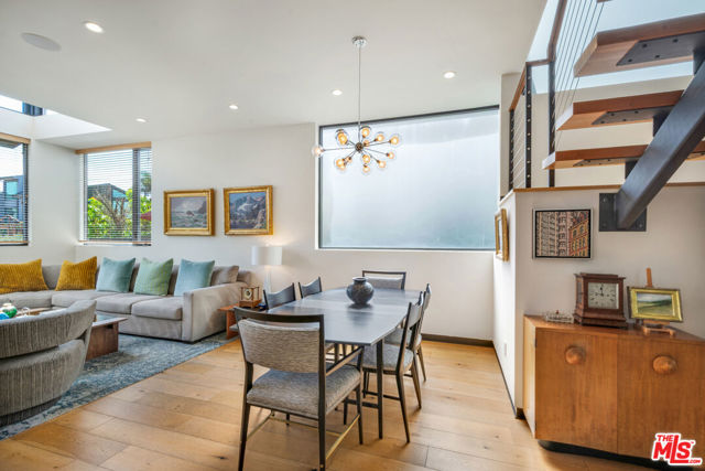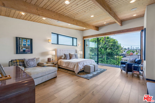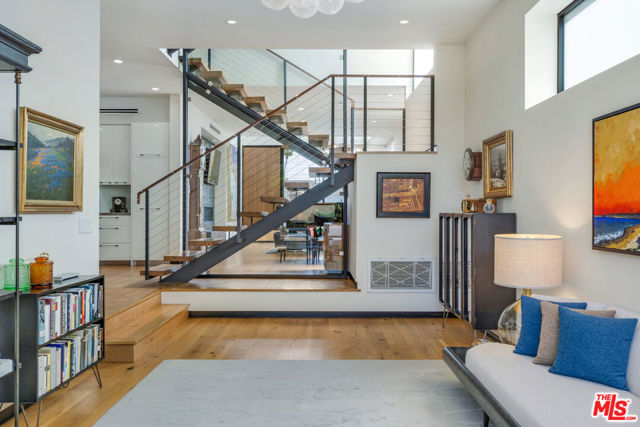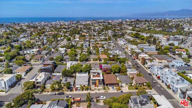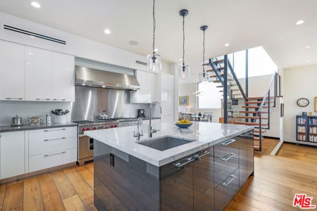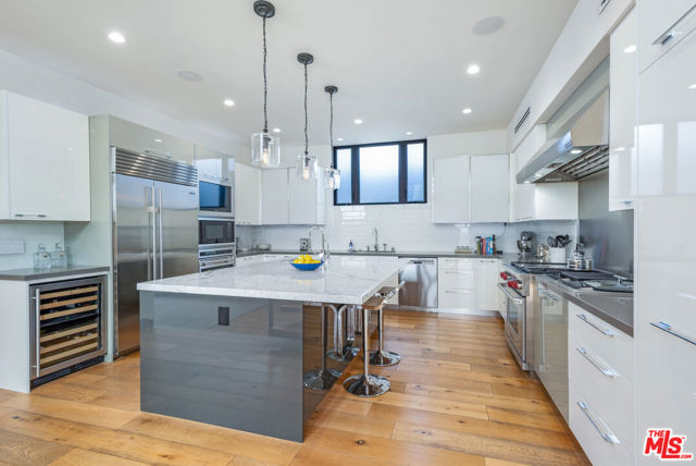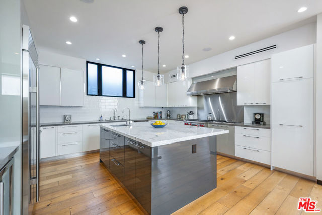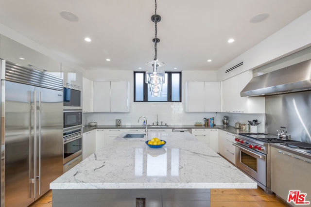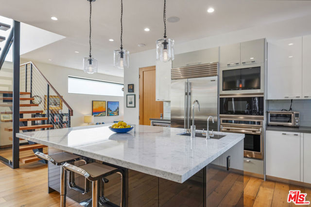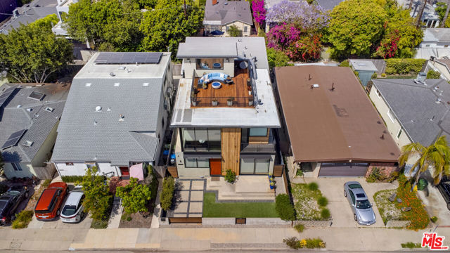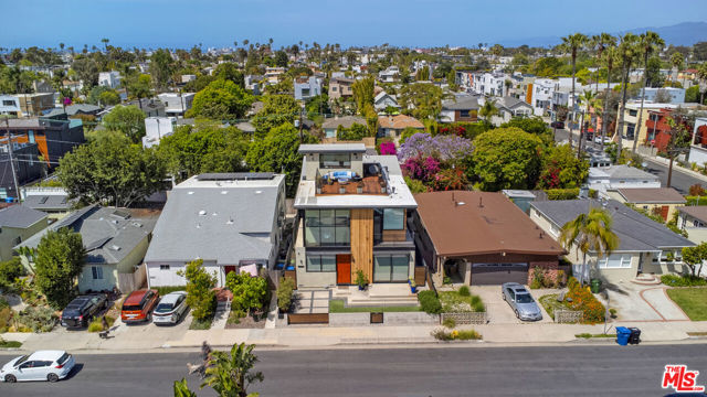 Embodying the very essence of refined luxury both inside and out, this stunning residence stands as a true architectural masterpiece in the heart of the coveted Silver Triangle. Featuring a sensuous palette of flawless materials and masterful attention to detail, this 4-bedroom, 5-bathroom home is a rare offering of timeless beauty. The property is securely enclosed with gated front and rear access, welcoming you through a sweet, manicured front yard that provides an immediate sense of privacy and serene charm. Upon entering, an impressive two-story volume establishes an incredible sense of scale, revealing a brilliant open floor plan flooded with light by monumental architectural glass panels and soaring sliding doors.The heart of the home is a world-class gourmet kitchen designed for the ultimate gourmande, anchored by a dazzling center island crafted from a singular, breathtaking piece of statuary Carrara marble. This culinary haven is a chef's dream, featuring a premier Wolf range with high-performance vent hood, integrated steamer and grill, and a massive Sub-Zero refrigerator to keep ingredients at their peak. Transitioning effortlessly from the main living areas, the step-down family room offers a sophisticated space for relaxation, flowing out to the lush and private backyard oasis.An industrial staircase leads to the second level, where you will find the incredible primary suitea true sanctuary featuring a large private balcony, a dream-come-true walk-in closet, and a seductive spa-like bath with a massive soaking tub. The luxury experience is elevated by an 8-component Sonos system serving built-in ceiling speakers in every room, the back patio, and the roof deck, allowing you to set the perfect mood throughout. Gated rear access leads to your private garage, while a Rain Bird programmable watering system ensures worry-free maintenance of the lush, drought-resistant landscaping. The journey culminates on the spectacular third-story roof deck, offering exceptional 360-degree panoramic views of the city & mountains. Quietly sophisticated, smart, and undeniably elegant, this trophy home offers an unparalleled lifestyle where there is no need to get in your car. You are just moments from the surf and sand of the beach and all the fine dining, coffee houses, and boutiques on the world's hippest street, Abbot Kinney.