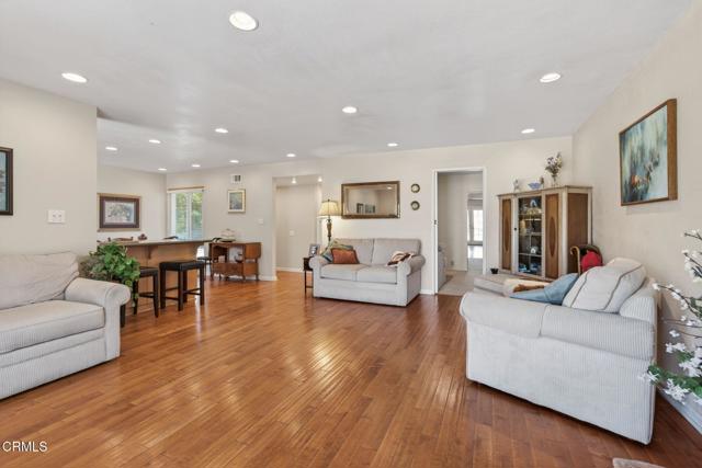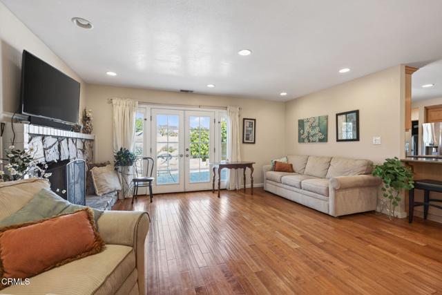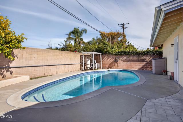 Welcome to this sunny East Ventura single-story pool home offering 4 bedrooms, 2.5 baths, and 1,577 sq. ft. of comfortable living space on a spacious, level lot. This home is special and has been loved and well taken care of for many years. The remodeled kitchen combines modern style with practical functionality. Granite countertops provide a sleek and durable workspace, while recessed lighting and a bay window brightens the room and highlights every detail. The warm wood laminate flooring complements the abundant wooden cabinetry, offering plenty of storage for all your culinary essentials. A spacious kitchen island serves as both a prep area and a casual gathering spot, and the charming breakfast nook is perfect for enjoying morning coffee or family meals. This inviting kitchen is designed for both everyday comfort and effortless entertaining. The natural light-filled living room features a raised-hearth stone fireplace and French doors framing a view of backyard. The attached two car garage is very spacious and will certainly satisfy. The dedicated 1/2 bath is perfect for direct entry from the swimming pool. The backyard is perfect for entertaining, with stamped concrete patios, deep blue, in ground pool, mature landscaping, fruit trees and plenty of room to enjoy the outdoors. The private primary bedroom includes mirrored closet door, a dedicated shower, toilet and sink. The dual-pane windows throughout the home provide plenty of natural sunlight, energy efficiency and quiet comfort. The large and wide driveway may be used for R.V parking or to park additional cars. This fine home blends indoor comfort with outdoor living, making it a true Ventura gem. In close proximity to parks, schools, transportation, shopping and highways. Just a short drive to Ventura Beaches, Downtown or a short commute to Santa Barbara or Los Angeles.