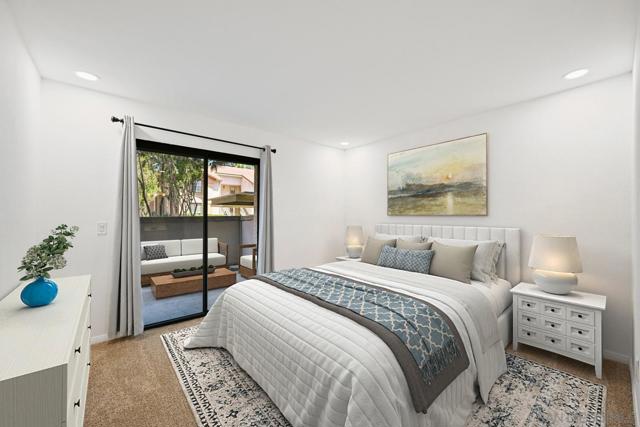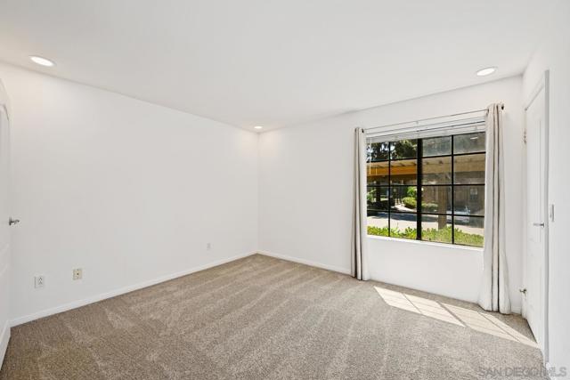 Ground-floor 2 bed, 2 bath residence in the highly desirable Il Palio community of Rancho Bernardo. This move-in ready home showcases a bright, open floor plan enhanced by fresh interior paint, brand-new carpet, elegant crown molding, and a cozy fireplace that anchors the main living space. The well-appointed layout flows effortlessly to a private patio—perfect for extending your living and entertaining outdoors. Enjoy the convenience of an in-unit laundry room, along with two parking spaces, including an assigned carport and an additional uncovered spot. Residents of Il Palio are treated to an array of resort-style amenities, including a pool, spa, tennis courts, fitness center, and more. Ideally situated within a top-rated school district and just moments from shopping, dining, parks, and scenic recreational trails, with easy access to I-15 for a seamless commute. A perfect blend of comfort, convenience, and lifestyle awaits.