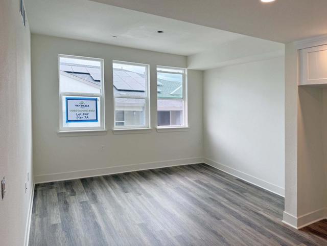 This 1-bedroom, 1-bath single-level flat offers a modern lifestyle above vibrant commercial space in the heart of downtown Morgan Hill. A signature Plan 7 layout, this residence features custom flooring throughout and elegant shaker-style cabinetry in Winter White with soft-close doors and drawers integrated throughout the entire home. The kitchen is beautifully appointed with an upgraded tile backsplash and quartz countertops, creating a sleek and sophisticated aesthetic for downtown living.