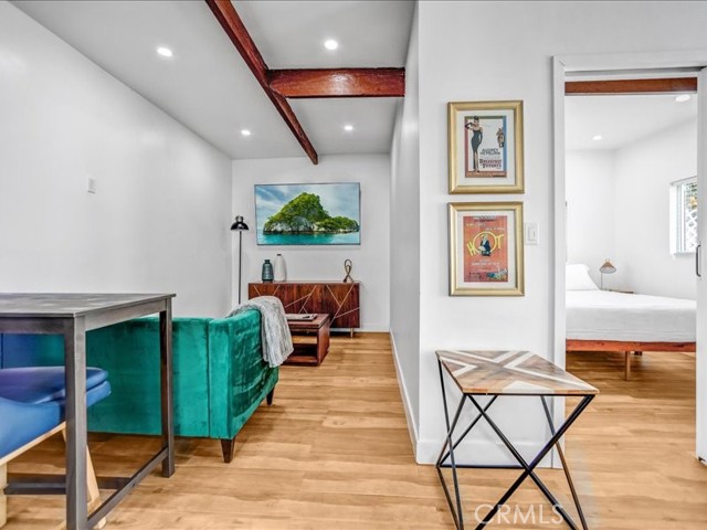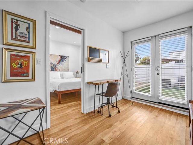 Experience the perfect blend of vintage soul and modern chic in this tastefully updated Spanish Mission-style bungalow. Tucked away in a quiet North Hollywood pocket adjacent to Toluca Terrace, you are just blocks from the vibrant NoHo Arts District and the scenic Chandler Bike Path. Inside, this 3-bed, 1.5-bath gem radiates character with original hardwood floors, a classic brick fireplace, and a light-filled formal dining room. The stylish galley kitchen is a true showstopper, featuring trendy brass accents, sleek finishes, and a highly functional butler’s pantry. The thoughtful layout is designed for maximum flexibility: Two spacious bedrooms share a beautifully appointed full bath. A third bedroom features its own private entrance and powder room, serving as an ideal executive home office, guest suite, or rental option. The fully gated lot is an entertainer’s dream, featuring a private front courtyard and a spacious, cemented rear patio perfect for alfresco dining and gatherings. At the rear, accessible via the alley, sits a detached 520 sq ft garage structure. Currently utilized as a comfortable living space (unpermitted), it represents a turnkey opportunity for a formal ADU conversion. With gated parking and mature landscaping, this property offers a rare combination of immediate style and significant future upside. A rare find for the owner-user or savvy investor looking to capture the best of the Valley!