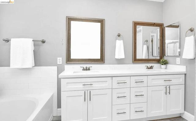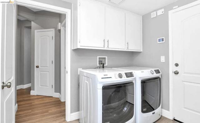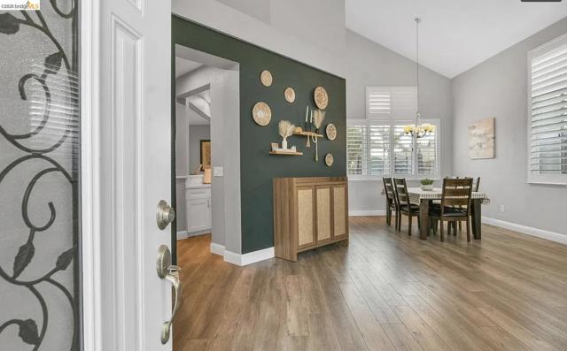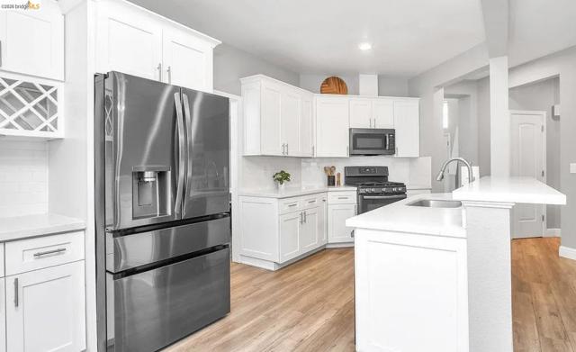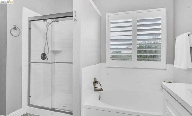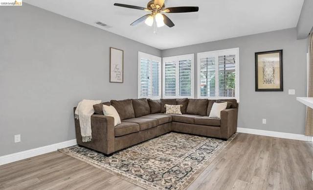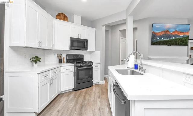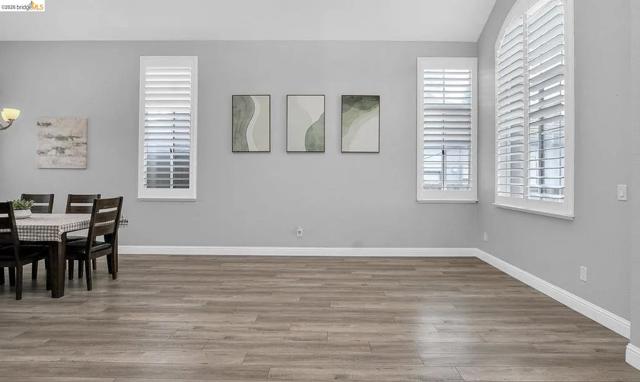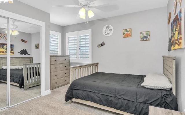 Large home with solar!!! Oversized back yard, move in ready home in the desirable community of Discovery Bay, just minutes from Delta access. Large downstairs bedroom ideal for guests or multi-generational living. Updated kitchen with quartz countertops, white cabinetry, abundant storage, & a gas range, flowing seamlessly into the inviting family room with a cozy fireplace. The home has plantation shutters throughout. The main level features laminate flooring, & upstairs, the home is finished with comfortable carpeting. The spacious primary suite offers a walk-in closet, updated dual vanities, a stall shower and tub. Energy efficiency with owned solar, including 33 pigeon-proofed panels. The landscaped front & backyard with plenty of room for entertaining. Detached bonus room in the backyard with AC & vinyl flooring, perfect for a private workspace or creative studio. Apply with RentSpree https://apply.link/VKuM90I