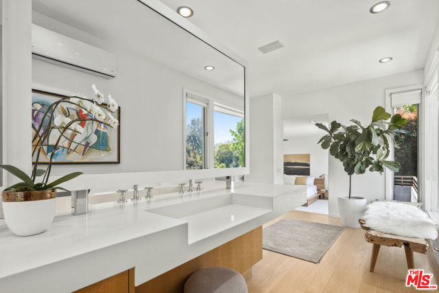Ideally located on a beautiful, quiet, tree-lined street in the Santa Monica Canyon neighborhood and located within the highly sought after Canyon Charter Elementary. This warm and elegant home has been lovingly re-imagined complete with all the modern conveniences. The open airy design which is centered around a generous landscaped courtyard with walls of glass that flood the space with natural light, while beautiful mature landscaping offers seclusion and privacy. Exquisitely chosen finishes in maple, marble and stone are prominent in the design. Featuring 3 bedrooms, 3 full baths, 4 working fireplaces, Radiant Heat/Central Air, Whole House Water Filtration, Heated Garage/Laundry/ Storage area with direct access. The primary suite is upstairs with floor to ceiling windows and a gorgeous bathroom with a deep soaking tub, separate steam shower, two-sided vanity and walk-in closets, all with stunning light and views. The 3 distinct outdoor spaces allow for true indoor/outdoor living. A very private front garden features a Zen Japanese Onsen and lounge area. Backyard provides the perfect location for Alfresco Dining and the interior courtyard offers superior entertaining space for an intimate evening by the fire as well as a central hub for large gatherings. Minutes from the award winning Canyon Charter School, Rustic Canyon Park, Will Rogers Beach, Montana Ave and the Santa Monica shops and restaurants.
