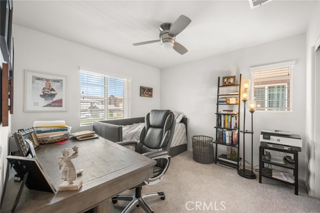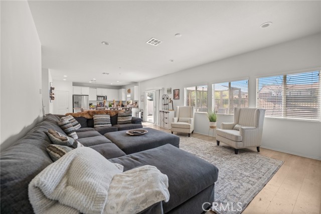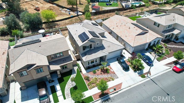 Welcome to Dusty Trail Way, a beautifully appointed NEXT GENERATION residence located in the highly desirable master-planned community of Audie Murphy Ranch in Menifee. This exceptional home offers a seamless blend of modern design, thoughtful functionality, and refined comfort—perfectly suited for today’s discerning homeowner. One of the most distinguished features of this property is its Next Generation living suite, a private in-home retreat designed for multi-generational living or added flexibility. Complete with its own separate entrance, private door that leads to the backyard, and a fully equipped kitchenette, this self-contained space offers the ideal solution for extended family, guests, or potential rental opportunities—providing both privacy and independence without compromise. The main living areas showcase an open-concept design filled with natural light, creating a warm yet sophisticated atmosphere ideal for both everyday living and elegant entertaining. Every detail has been carefully considered to deliver comfort, style, and functionality throughout. Upgraded water-resistant laminate flooring all throughout the first floor for a modern look. Down stairs you will find the private suite, along with an open concept kitchen dining and family room area flow. Upstairs you have 3 great size bedrooms washer & dryer room. Lovely backyard with easy maintenance. Enhancing the home’s long-term value and efficiency are several premium upgrades, including fully paid-off solar, offering significant energy savings, along with a paid-off water filtration and water softener system, ensuring superior water quality and everyday convenience. Step outside and experience a vibrant, amenity-rich community where low HOA dues provide exceptional value, granting access to resort-style pools, clubhouses, scenic walking trails, parks, and recreational spaces—creating a lifestyle centered around leisure, wellness, and connection. Perfectly positioned in one of Menifee’s most sought-after neighborhoods, this home represents a rare opportunity to own a modern, energy-efficient property with versatile living options and outstanding community amenities.