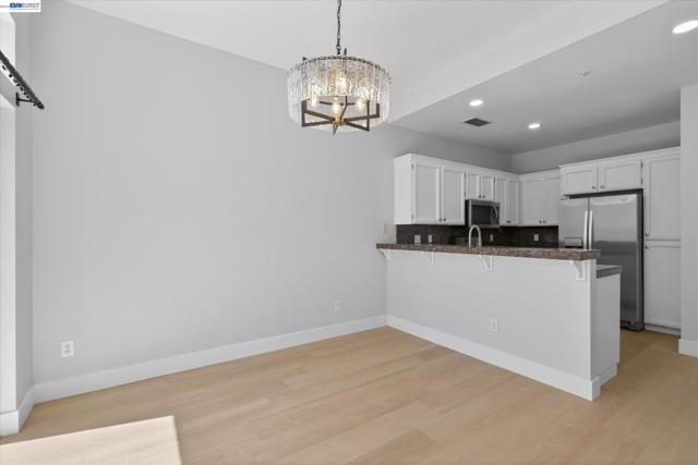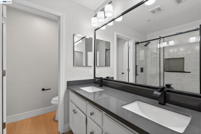 Northeast-facing and fully renovated, this bright and airy end-unit townhouse offers exceptional privacy with no rear neighbors and a prime court-front location in the desirable Siena community. Featuring two spacious bedroom suites, 2.5 baths, and a two-car attached garage with extra storage, the home has just undergone $60,000 in upgrades, including brand-new flooring, fresh interior and cabinet paint, updated lighting, a new dining and foyer chandelier, and beautifully remodeled bathrooms—highlighted by a modern primary suite with a walk-in shower and dual vanities. The open-concept main level showcases a large living room flowing into the dining area and a well-appointed kitchen with granite countertops, full backsplash, stainless steel appliances, a gas cooktop, and bar seating, plus a convenient powder room and laundry closet. Step outside to a low-maintenance stamped concrete backyard, perfect for indoor-outdoor living. Upstairs, enjoy additional storage on the landing, a spacious primary suite with high ceilings and walk-in closet, and a secondary en-suite bedroom. Residents benefit from top-rated Pleasanton schools and HOA amenities including a pool, spa, clubhouse, tennis courts, trails, parks, and security patrol. Ideally located within walking distance to BART, Iron Horse Trail, and nearby parks, and just minutes from Hacienda Business Park and shopping destinations like Whole Foods and Regal Cinemas, this move-in-ready home combines comfort, style, and convenience.