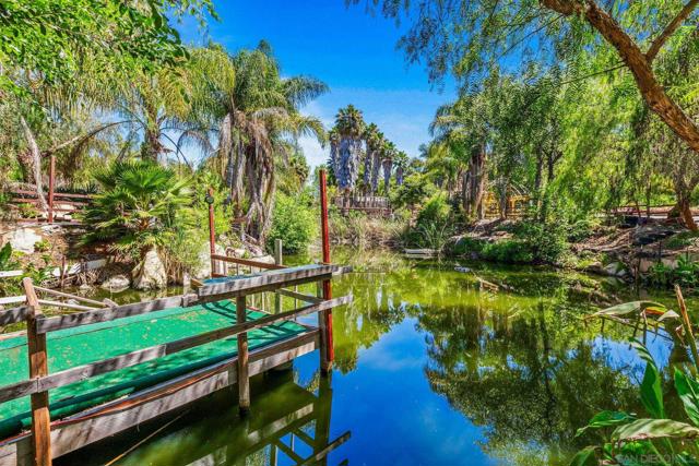 Mountain oasis living in Valley Center that delivers a powerful mix of luxury living, privacy, land value, and immediate cash flow. This one-of-a-kind estate sits on a massive lot surrounded by a secure gated mountain enclave with an abundance of privacy, creating a true retreat environment. The main residence is a fully furnished, upscale 4-bedroom, 2.5-bath single-family home designed for resort-style and large living gatherings, comfortably accommodating your family, friends, and friends' friends. Includes a spacious sunroom, gourmet chef’s kitchen with an industrial-size refrigerator and oven, pantry storage, open living areas, a bonus room with a private bathroom, and an attached three-car garage. Outdoor amenities rival a private resort, cabana hut, fire pit, dog run, raised organic garden, a private lake, multiple ponds, endless gardens filled with fruit trees and exotic blooms offering a swimming pool, spa, jacuzzi, lounge areas, outdoor kitchen, pizza-oven hut, and multiple entertainment spaces ideal for events, retreats, or luxury living. The property also includes three detached income-producing units, creating an estimated combined monthly income of approx. $6,500+: • Garden Suite: Detached 1-bed/1-bath (~540 SF) with full kitchen, large living area, private deck with lake views, herb garden, and approx. 2,000 SF private yard. Fully upgraded interior. Est. rent ~$2,000/month. • Buddha Suite: Furnished private retreat with full bath, outdoor kitchen, fire pit, and pool/jacuzzi views. Est. rent ~$1,500/month. • Bridal Suite: Unique approx. 900 SF enclosed st