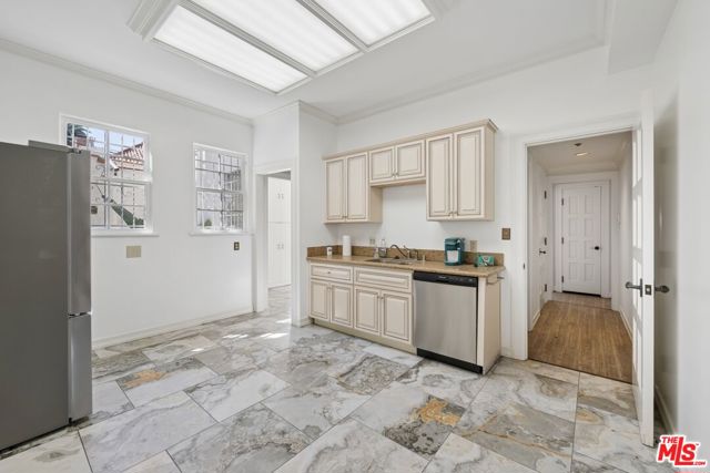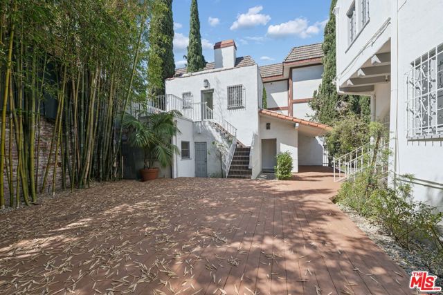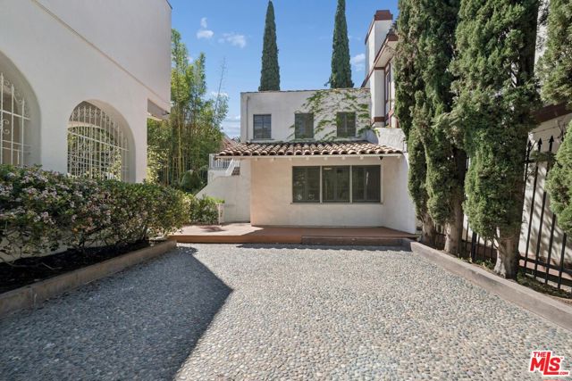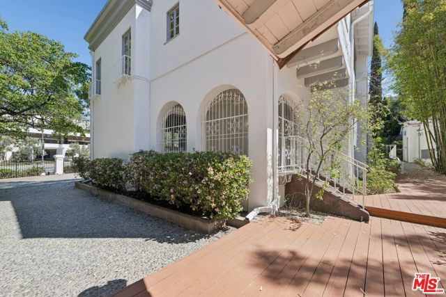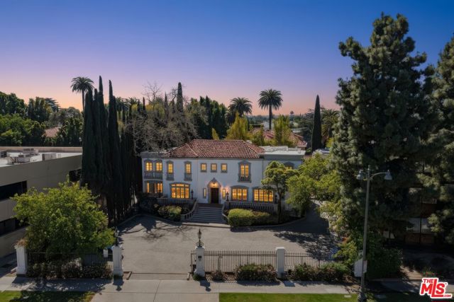 Unique mansion style asset zoned for commercial office use, offering live/work potential (buyer to verify). Ability to create a flagship/headquarters or a residential style compound in the heart of Los Angeles. The gated property offers 3 stand alone structures on-site: A main estate set up for multi-function office use, including a front reception area, with multiple private offices, meeting rooms, a large kitchen, 3 restrooms, and ample storage spaces, plus a 2nd private staircase for entry/exit points in the rear offers access to the expansive garden deck - A detached 2 story guesthouse / creative studio equipped with first floor offices, a full kitchen, and 2nd level guest space with remodeled marble bathroom and shower which can be used for office space or an apartment /guest quarters for traveling visitors - and a bungalow perfect for an extended meeting area, podcast studio, game room, or additional workspace. Mature Italian cypress trees, vibrant florals and striking bamboo give the property a distinct sense of charm and identity. The landscaped grounds allow for a seamless indoor/outdoor flow. This is an opportunity to acquire a completely private and gated compound in prestigious Hancock Park ideal for design-driven brands, creative companies, production studios, and professional firms including law firms, fashion houses, embassies, media companies, schools, and elevated wellness concepts seeking a distinctive flagship environment. A rare find with valuable potential.
