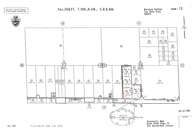 This expansive 11.41-acre parcel on the Barstow-Bakersfield Highway in Hinkley offers a prime opportunity for investment or development. With direct frontage on the paved highway, this property provides excellent accessibility and visibility for a variety of potential uses. As one of four adjacent parcels available for separate purchase, it presents the option to acquire additional acreage for larger projects. Buyers are advised to verify utility availability and land use possibilities to maximize the potential of this property. Parcel No. 0496-101-57-0000 (56, 58, 59), GPS: 34.92404, -117.27122.
