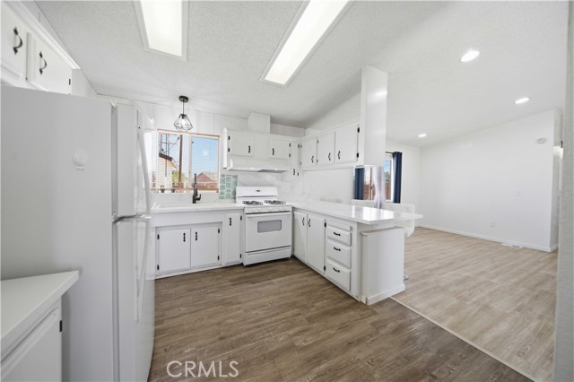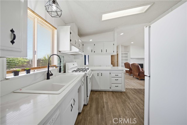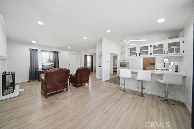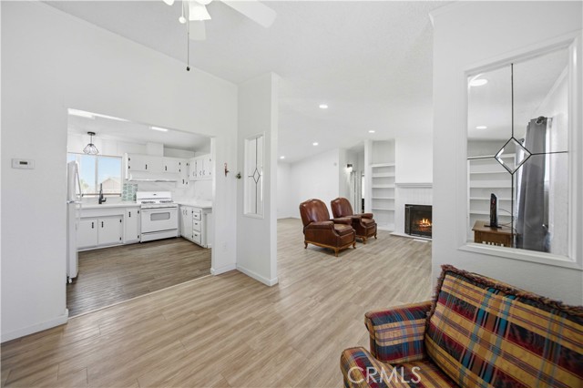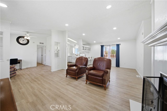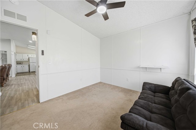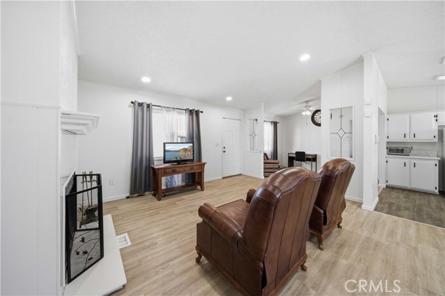 This beautifully updated manufactured home on a permanent foundation offers 1,357 sq. ft. of comfortable living space, perfectly situated on a spacious 10,018 sq. ft. lot with RV access. Recent upgrades include a newer roof, HVAC system, and fresh interior and exterior paint, giving the home a modern and well-maintained feel. Inside, you'll find luxury vinyl flooring throughout the main living areas, plush carpeting in all three bedrooms, and tile flooring in the bathrooms. The kitchen features stylish white cabinetry with black hardware, complemented by sleek quartz countertops, creating a clean, contemporary look. The primary bathroom includes a white vanity, quartz counter, and updated black fixtures for a polished finish. Enjoy an open floor plan enhanced by recessed lighting and ceiling fans throughout, offering both comfort and functionality. The oversized detached two-car garage provides ample space for parking, storage, or a workshop. Both the front and rear yards offer a blank canvas, ready for your personal touch and landscaping vision. Conveniently located within walking distance to local shops, elementary and middle schools, and just off the city's main corridor for easy commuting. The property is zoned C3, allowing for both residential living and light commercial use--adding incredible flexibility and value. You don't want to delay previewing this home. Call us today and schedule a private showing; you'll be glad you did.